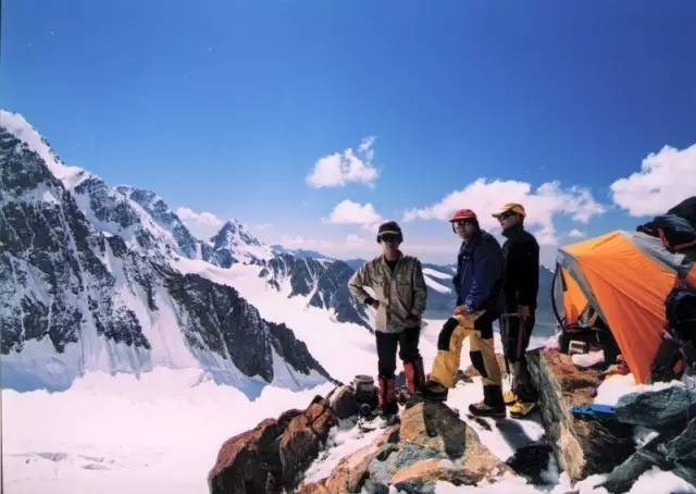 2002年博格达峰一号营地(左起:杨春风、王铁男、陈翔)。
