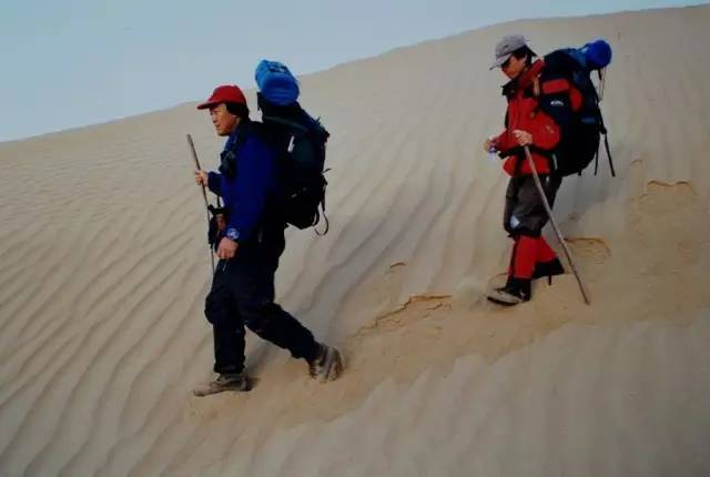 2001年冬季我们在沙漠探险(前王铁男、后杨春风)。