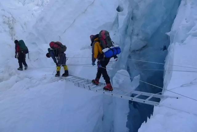 脚下是冰岩,身后是万丈深渊,上方还有被踢落的冰渣袭扰,为避免分散对方的注意力,我们谁也不说话,彼此默契到只需一个眼神和一个简单的“OK”手势……。一根维系生命的绳索在我们之间穿过,把我们生命紧密联系在一起。