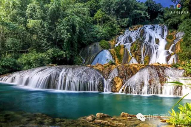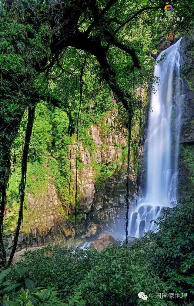 有的瀑布就很有层次美感比如屏边县九层瀑布。它是由大围山原始森林公园内众多的溪流、山泉汇合而成,瀑布共有三叠,每叠三层,共九层,每叠瀑布高约7米,宽约4米,顺石隙飞流直下。瀑布下面 有一深潭,水清澈见底,潭中奇石数块,可容纳数人站立留影。如坐石观瀑,则神爽惬意。