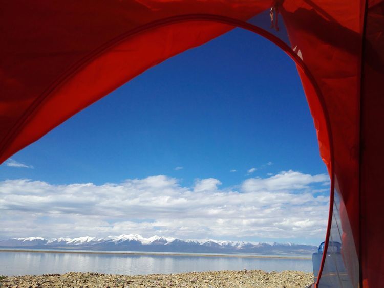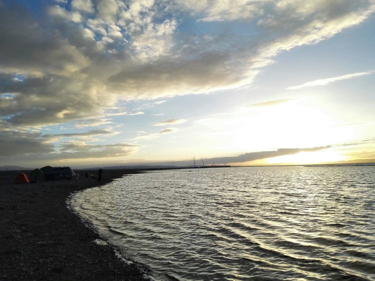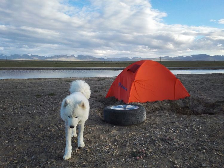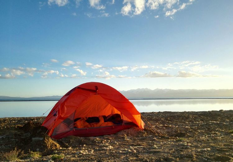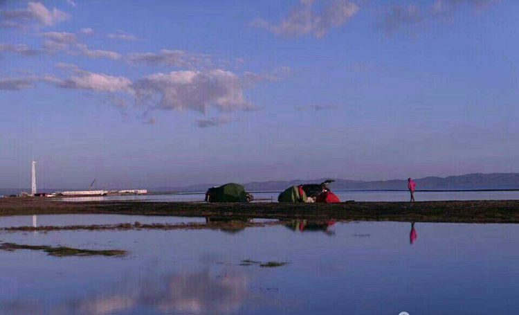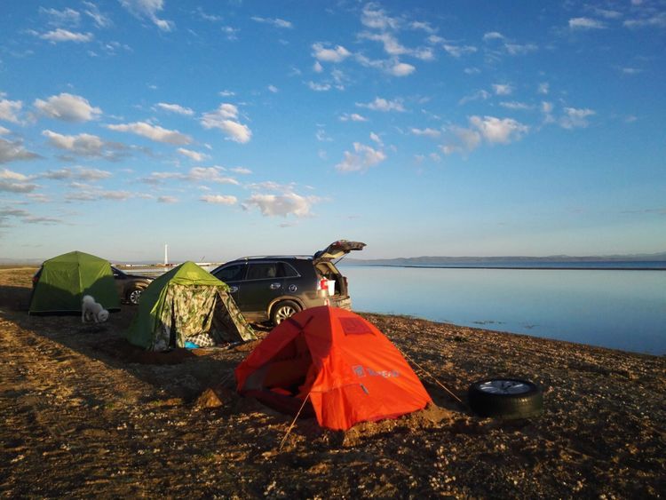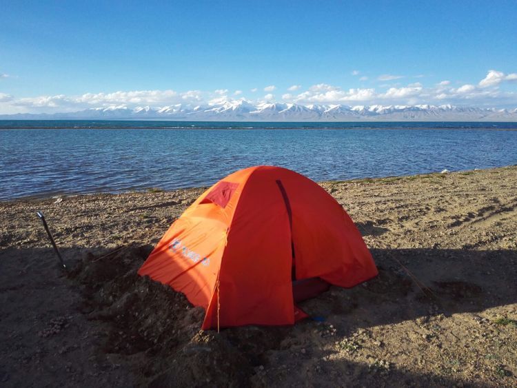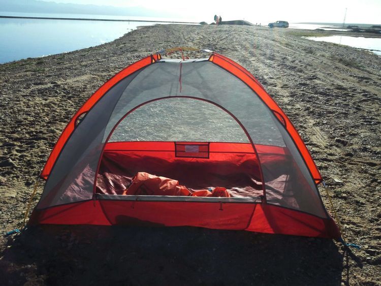 湖边第一次扎帐篷,风很大,和山野扎营是不一样的,没有避风物,只有靠沙子加固帐篷。