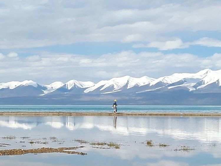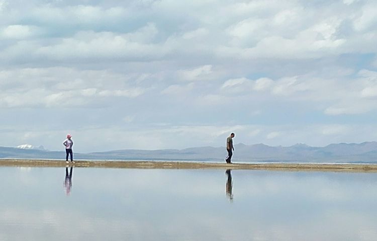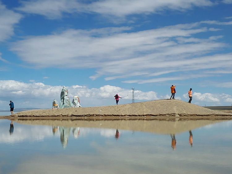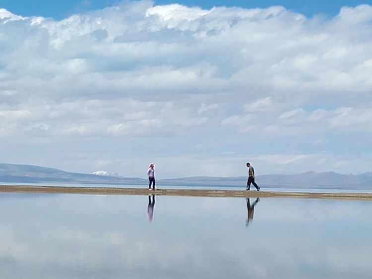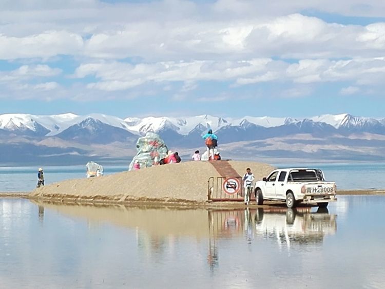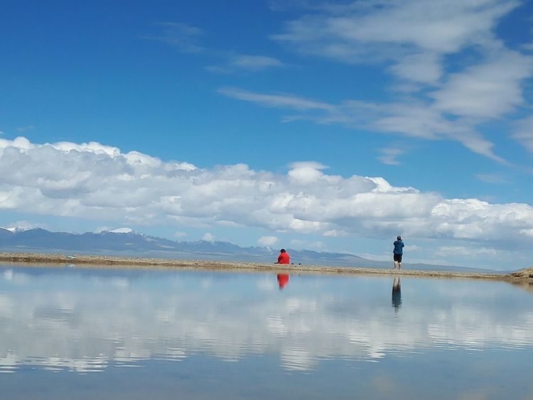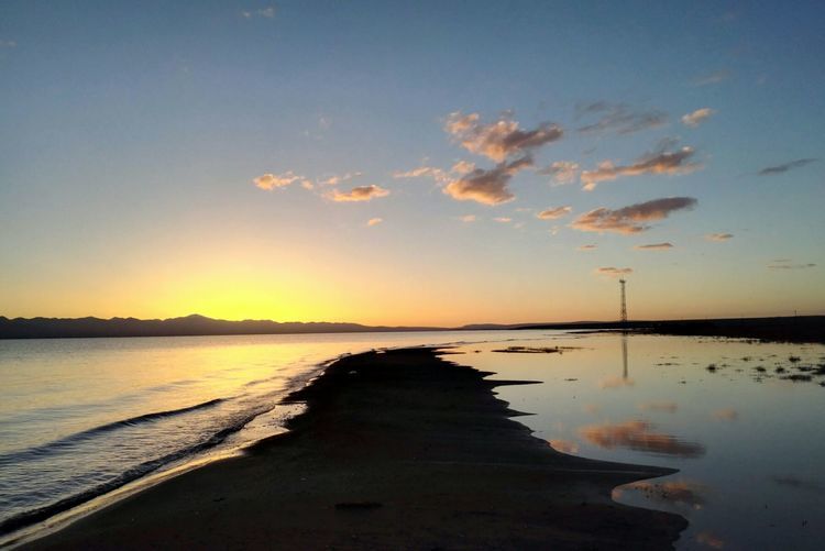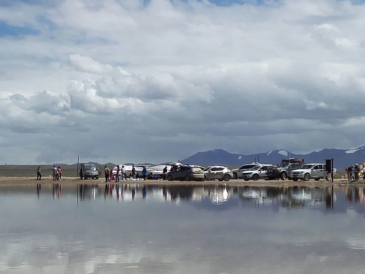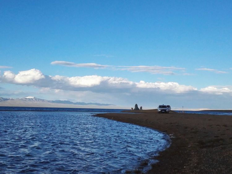 湖边第一次扎帐篷,风很大,和山野扎营是不一样的,没有避风物,只有靠沙子加固帐篷。
