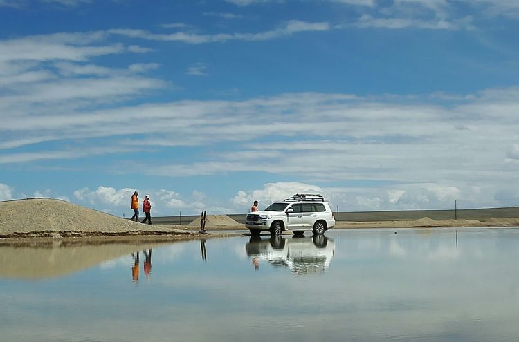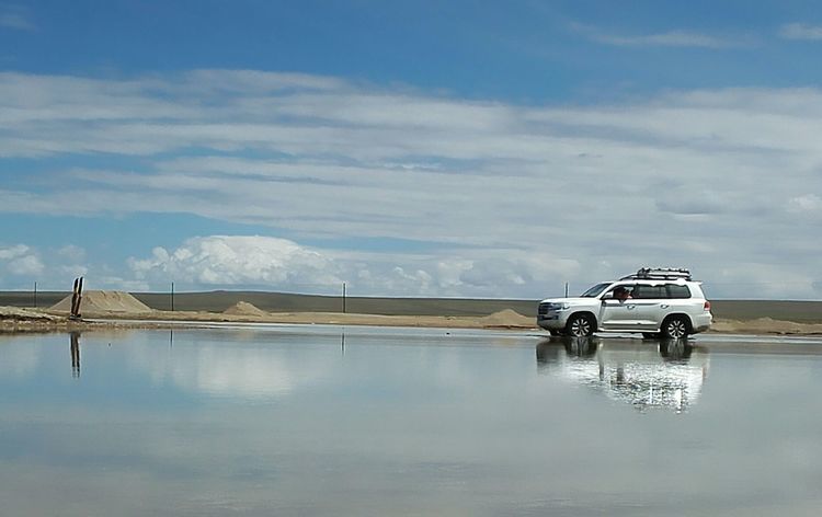 青海第二大咸水湖哈拉湖,位于青海省德令哈市北156公里,祁连山主峰团结峰南麓,湖面海拔4077米,湖面积593平方公里。湖区东、北、西三面百多公里均为湿地沼泽河流的无人区,夏季无法进入,只有湖南侧通往德令哈市的沙石路可进入。需翻越三个四千多米的达板,穿过六道过水河滩,不下雨可通过。