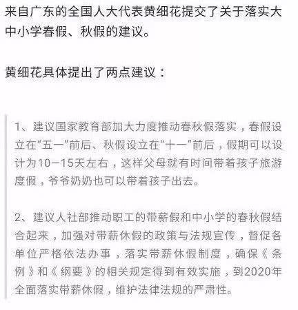 然而,虽然我们没有暑假和寒假,我们的孩子仍然可以享受n年。。。你还记得今年两会期间全国人大代表关于“中小学实行春秋假期”的建议吗?