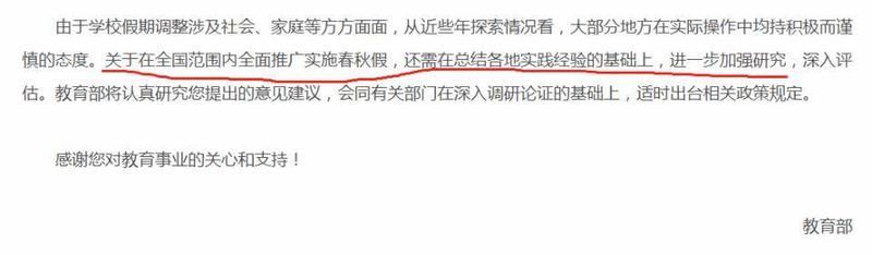 对此,21世纪教育研究院副院长熊丙奇在接受媒体采访时表示,教育部在答复中强调,“由于学校放假的调整涉及社会和家庭的方方面面,从近年来的探索来看,大多数地方都是积极的、积极的实际操作谨慎”。