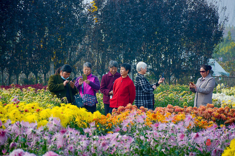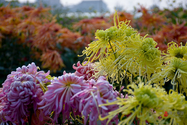 近日,西安鄠邑祖庵镇百亩菊花园区内,各种菊花含苞怒放,五彩缤纷,花香四溢,招蜂引蝶,千姿百态……吸引了众多游客前来观赏。鄠邑区祖庵镇菊花园坐落在祖庵镇重阳宫正南一公里处,据了解,园区除了重阳宫自行培育的重阳仙菊外,还从南京农业大学菊花研究所引进了钟山系列、切花菊、传统菊等300多个品种。整个园区除了以菊花为主要元素打造太极八卦造型以外,还打造了如意、南山、花带、花池等多种造型,让整个生态园区更具艺术文化氛围,各色菊花争奇斗艳。祖庵,因天下祖庭而厚重,因菊花斗艳而飘香,因人杰地灵而大美!