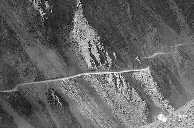 从接近垭口的位置回望,它如一条惨白色的细线,在觉巴山的峭壁上飞舞,感觉上非常孱弱,似乎随手就可以在山间抹去;但事实是如此的惊险!