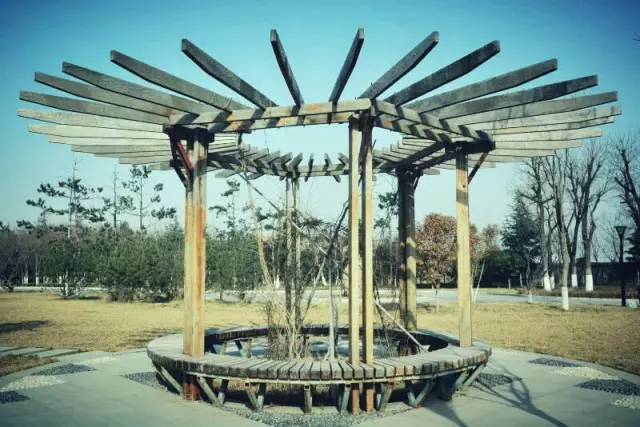 造型别致的休息亭,待到花开之时,一定会更加美丽