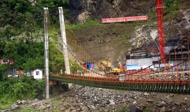 通麦大桥是川藏公路318国道的咽喉工程。大桥设计为双塔双跨悬索桥,跨越帕隆藏布江的支流易贡藏布,全长258米,主跨为210米,高31.5米。