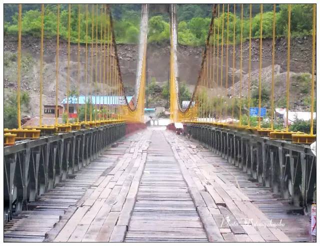 原来这里有一座永久性的钢筋水泥浇筑的大桥,2000年4月9日西藏易贡发生特大山体滑坡,特别是易贡湖水溃坝暴泄后,通麦大桥及附近的一些公路被冲毁,川藏南线交通完全中断,墨脱、波密、林芝三县90多个乡成为与世隔绝的孤岛。