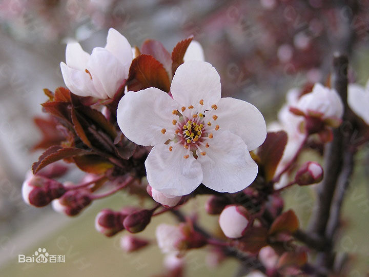 另外,虽然两种植物花期都在三四月,但红叶李比樱花开花时间稍早,且花叶同放。所以我们现在看到的是红叶李,而不是樱花。