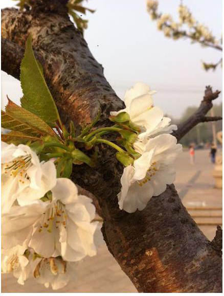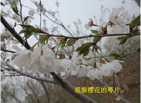 樱桃花与樱花到底有啥区别:第一,樱花树干上的皮孔突起明显,好似是抹了口红的唇印;樱桃树干的皮孔尽管与樱花树皮孔很相似,但较平,不突出,“口红”不明显。第二,樱花树树叶边缘有象麦芒样的芒齿,樱桃树树叶没有。第三,樱花盛开时,萼片不反转;樱桃花盛开时,萼片是反折过来。第四,樱花花梗较长,樱桃花是一簇簇的,有一个木花柄(总花柄),上面密密麻麻的多个小花柄,每个小花柄上才有若干个带梗的花。另外,需要说明的,樱花花瓣尖上有缺口,樱桃花花瓣上也有缺口,凭花瓣上是否有民缺口来判断是错误的。
