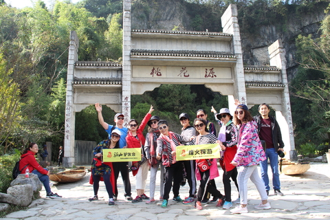 早餐后,游览国家AAAAA级景区【酉阳桃花源景区】(游览约2小时),桃花溪水自洞内流出,清澈见底.有问津亭、陶公祠、桃园、荷花池等景点。此地集民族文化、桃源风光于一体,展示出隐逸古朴的田园风光,2012年被评为国家AAAAA级旅游区,成为武陵酉州的一朵奇葩。桃花源太古洞堪称“地下的世外桃源”,有宽敞的大 厅、曲折的廊道,险峻的峡谷,幽深的地下河,还有五彩缤纷的钟乳石,景观秀丽。