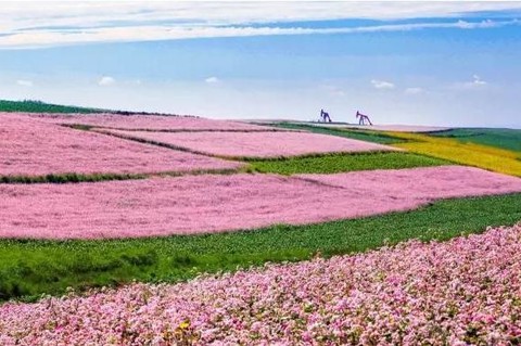 每年的的八月下旬开始到九月,定边的万亩乔麦花盛开