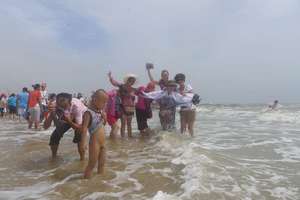 下午:继续自由活动(畅游第三海滨浴场,每车领队带两把遮阳伞、两张地席,固定营地,供队员休息,费用已包含): 中午饭后午休,三点集合然后去大海边游泳至七点左右。赶海,在海水退潮的时候,在海水褪去的礁石堆中,收获一些诸如贝类、小鱼、小虾、小螃蟹等海产品。日照游泳要过瘾过足,不虚此行。用沙子把自己埋起来,还有【海上风光自行车】、【海上冲锋艇】、【海上摩托】【海上空中飞艇】,均可以自己自费去玩。
