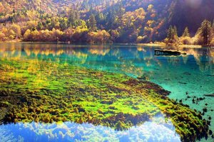 “黄山归来不看山,九寨归来不看水”,九寨沟的美丽让见过它的人们无不啧啧赞叹。九寨沟景区以原始的生态环境,一尘不染的清新空气和雪山、森林、湖泊组合成神妙、奇幻、幽美的自然风光,显现“自然的美,美的自然”,被誉为“童话世界”、“人间仙境”。九寨沟的高峰、彩林、翠海、叠瀑和藏族风情被称为“五绝”。 沟内串珠式的分布着108个大大小小形状各异的海子,虽深过数十米,但可直视海底。因水中植物种类和湖底沉积物不同,水色各异,涟漪多彩,晨曦或夕阳下,海中之倒影,更加明净真切,步移景异,妙趣无限。
