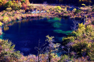 九寨沟的精华在于水,五花海被称为“九寨沟一绝”,同一片水中呈现鹅黄、墨绿、深蓝、藏青等颜色,在阳光照耀下更是绚丽多姿,令人眼花缭乱。