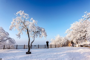 千里冰封,漫山雾凇银装素裹,粉妆玉砌,清冷的空气将雾凇很好的保留,