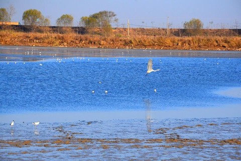 大荔黄河湿地保持完好的自然湿地景观,是一个完整的湿地植被生态系统。让人从内心发出感叹,大自然真美!大荔县黄河湿地保护区植被类型众多,天然植被类型有13个,分布有大面积芦苇和其它伴生植物有碱蓬、夏至草、狗尾草等。非天然植被类型有14个,主要有刺槐、柽柳、苦楝、紫穗槐、杨树、泡桐及红枣等树种。保护区气候属暖温带大陆性半湿润季风气候,四季分明,雨热同季,具有明显地域特征。温和的气候,丰富的光热资源,吸引了大量鸟类来此越冬、栖息、和繁殖,是多种候鸟越冬的天堂。