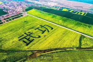 画笔绘春光——泼墨武功,目光所及,由近及远的透视感让这片花海层次鲜明,亮黄的花海、紧邻花海的房屋,更远处的山峦和天空……一幅以花海为主体,以山为背景的乡间图景就展现出来了。