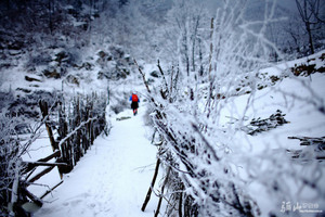注意:本路线从灞源镇下高速从南古庄沟缓缓上山,一路沿着山民采药的小道登顶小垭口山神庙,然后沿梁踏雪纵横十几里先后登顶将军帽、闵家山,玉山连绵,山脊流线,沟壑交错,风光无限。随后从胡家沟下撤,大U型行山环穿。