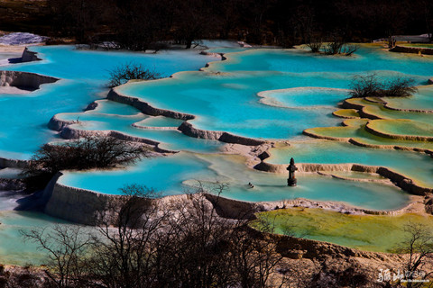 这种并不少见的喀斯特地形,黄龙沟数量之多、规模之大、色调之艳丽多彩,实属举世无双。