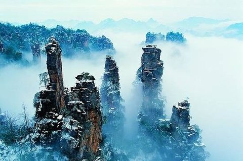 峰林,云海,日出,冬雪。还有那一幅幅雄伟壮观,奇特迷人的景象。主要景点:贺龙公园、西海、仙女献花、御笔峰、天子阁、游“风景如画、一步一景”的——【十里画廊】