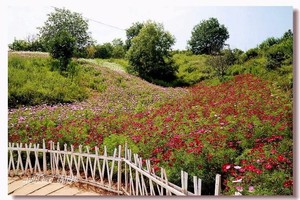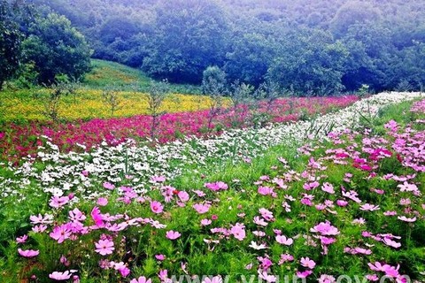 宜君花溪谷位于陕西省铜川市宜君县县城和南山公园之间东沟内,走进宜君花溪谷,百花烂漫、林木葱郁、溪流潺潺,彩色的花带如同从山谷中流淌出来一般,形成一条彩色的小溪,也像一条绚烂的彩带镶嵌在县城中间。