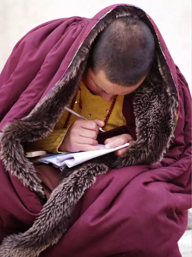 聚精会神的坐在里面念经,不管外面如何冷。
