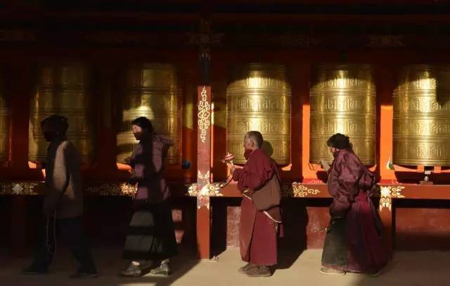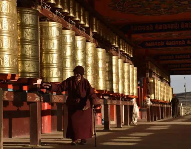 拨动着佛塔周围的转经筒,一遍又一遍的走着,口里念着经文,