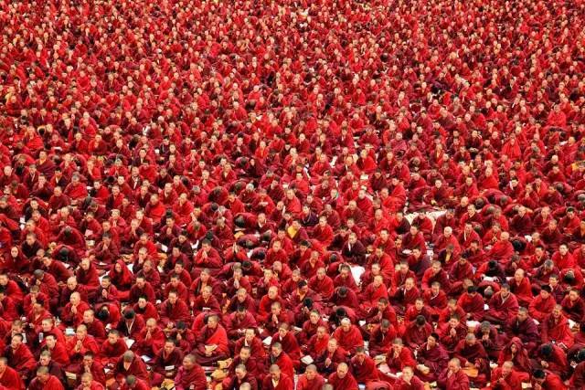 最初,在这个青藏高原上近乎与世隔绝的不毛之地,9000多位男女僧侣为自己的信仰建立了一个新的家园。他们在此聆听他们不参政的精神领袖晋美彭措对他们的教诲。到2001年,另外1000多汉族人也来到此地,并把喇荣五明佛学院定义为他们心中的圣地。