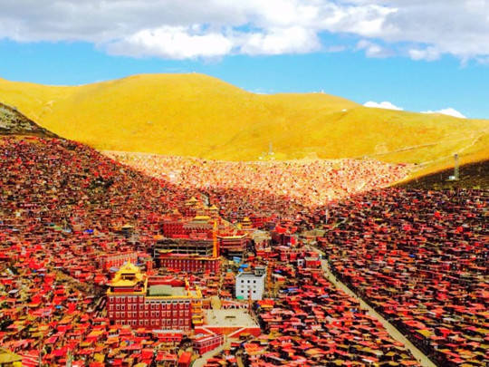 这些小屋每一间只有几平米大,两个房子之间只要有空隙,僧人们就会见缝插针的建自己的小屋,涂成褐红色。