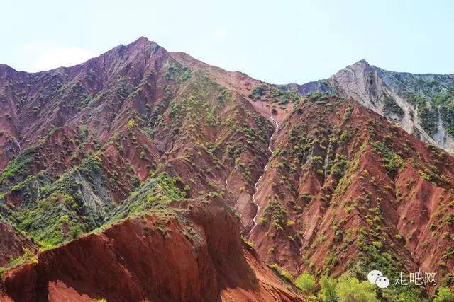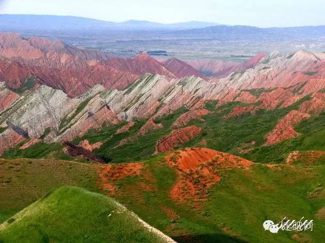 这是连绵起伏的丹霞地貌和形态各异的侏罗纪山系,各色岩石、黄土构成了壮美的峡谷风光,雄浑巍峨,呈赭红色,橙、黄、青、绿相杂其间,峭壁悬崖,层层叠叠。