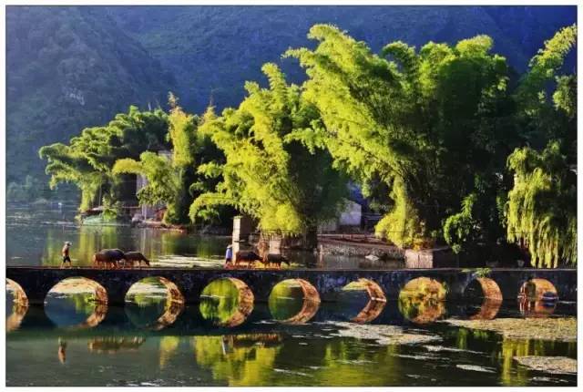 这样的画面,很多时候,却只在怀旧电影里。当你走进鹅泉,关于夏天的所有痴想,都在这里化作了现实。那山,那水,淡如丹青;那树,那桥,美若画卷。
