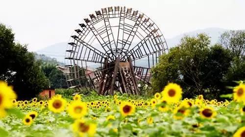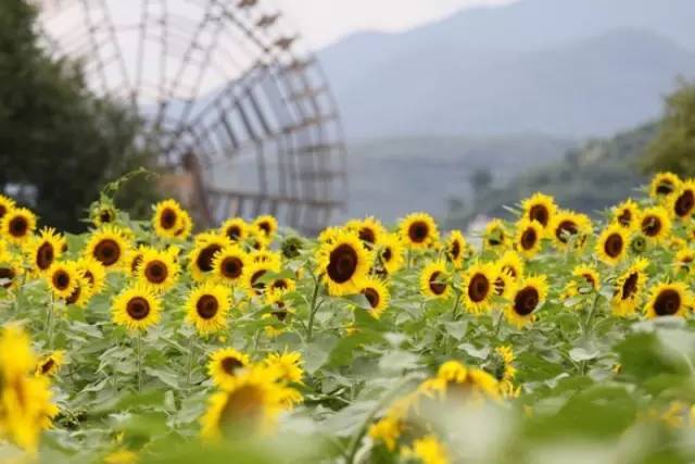 夏日的螳螂川,是向日葵的海洋,是东方的普罗旺斯。顺着谷道的斜口望过去,绵延的葵花在阳光的映照下,和着清流的水渠和花田里的木头水车,一起装进了夏日的画框中。
