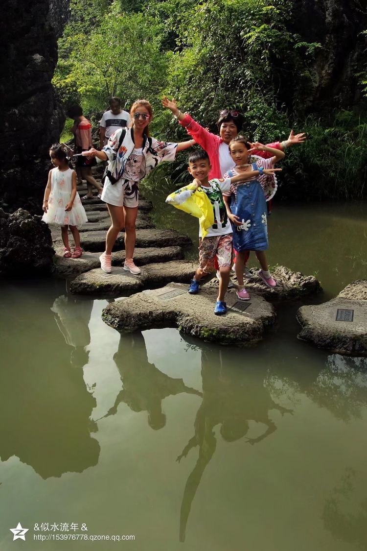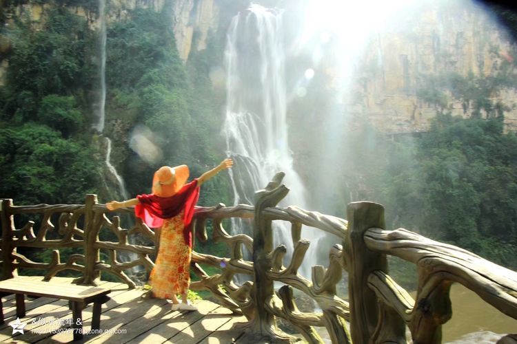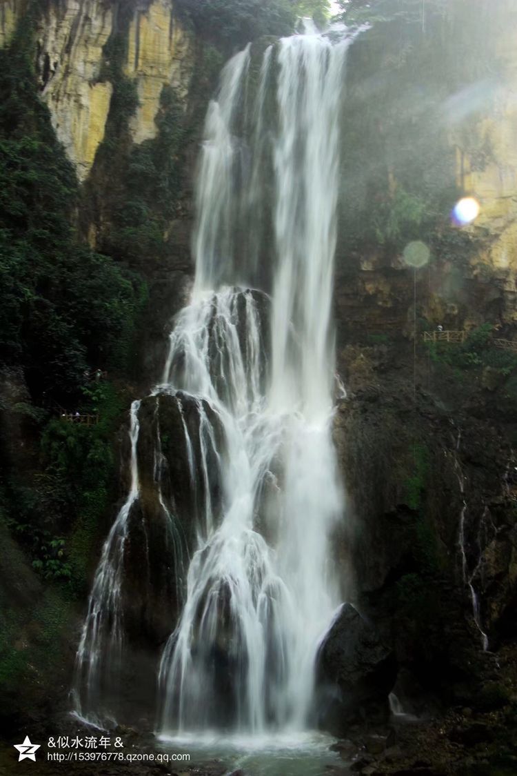 九龙瀑布,是国家4A旅游景区。由于特殊的地质构造和水流千年侵蚀,在长约4公里的河道上,凭借地貌差异形成了十级高低宽窄不等、形态各异的瀑布群,或雄伟、或险峻、或秀美、或舒缓,千姿百态。其中最大的一级宽112米,高56米,气势恢宏,蔚为壮观,号称九龙第一瀑。我们是从山上往下走,转过几道弯便是一级瀑布,再转过几道弯又是一级瀑布。真是山葱郁、水清澈,条条瀑布各具风采,另人目不暇接,陶醉其中挪不动脚。
