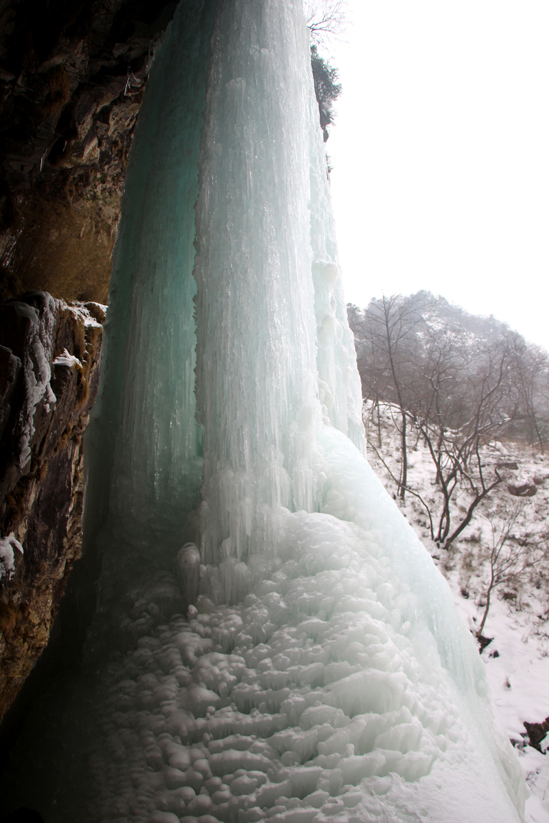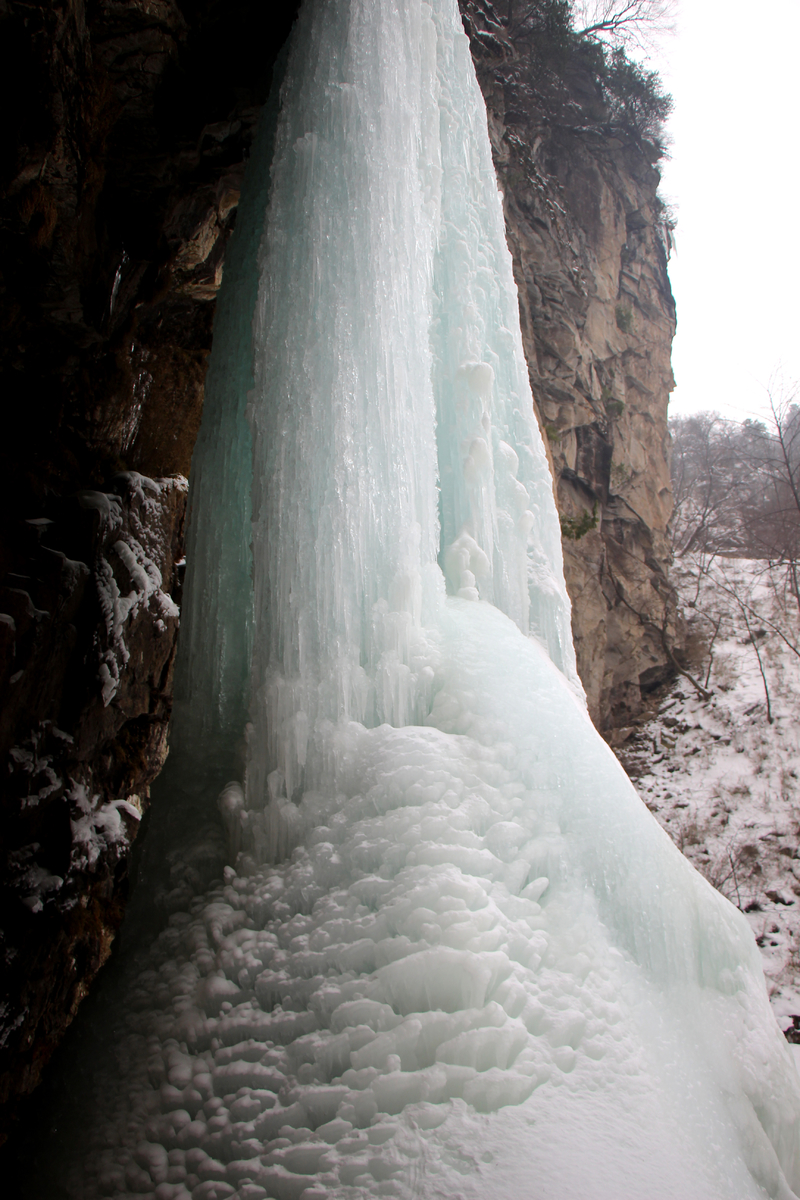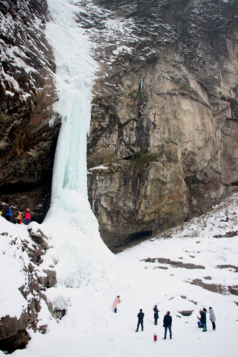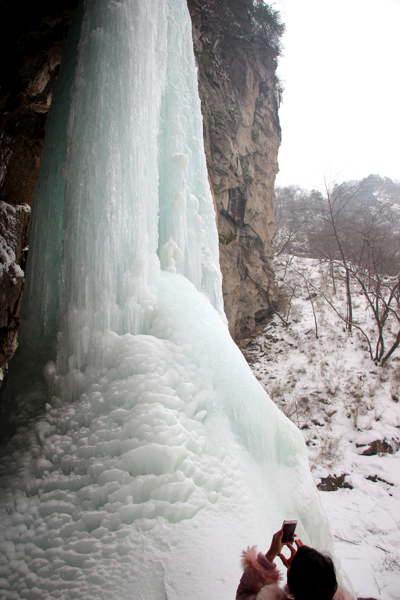 瀑布,百米悬冰,上下连成浑然一体,晶莹剔透,美轮美奂,冰清玉洁,宛如天宫琼楼玉宇仙境。