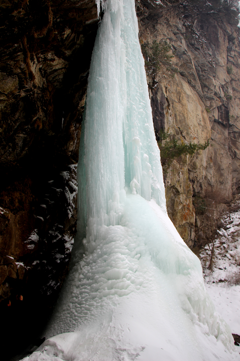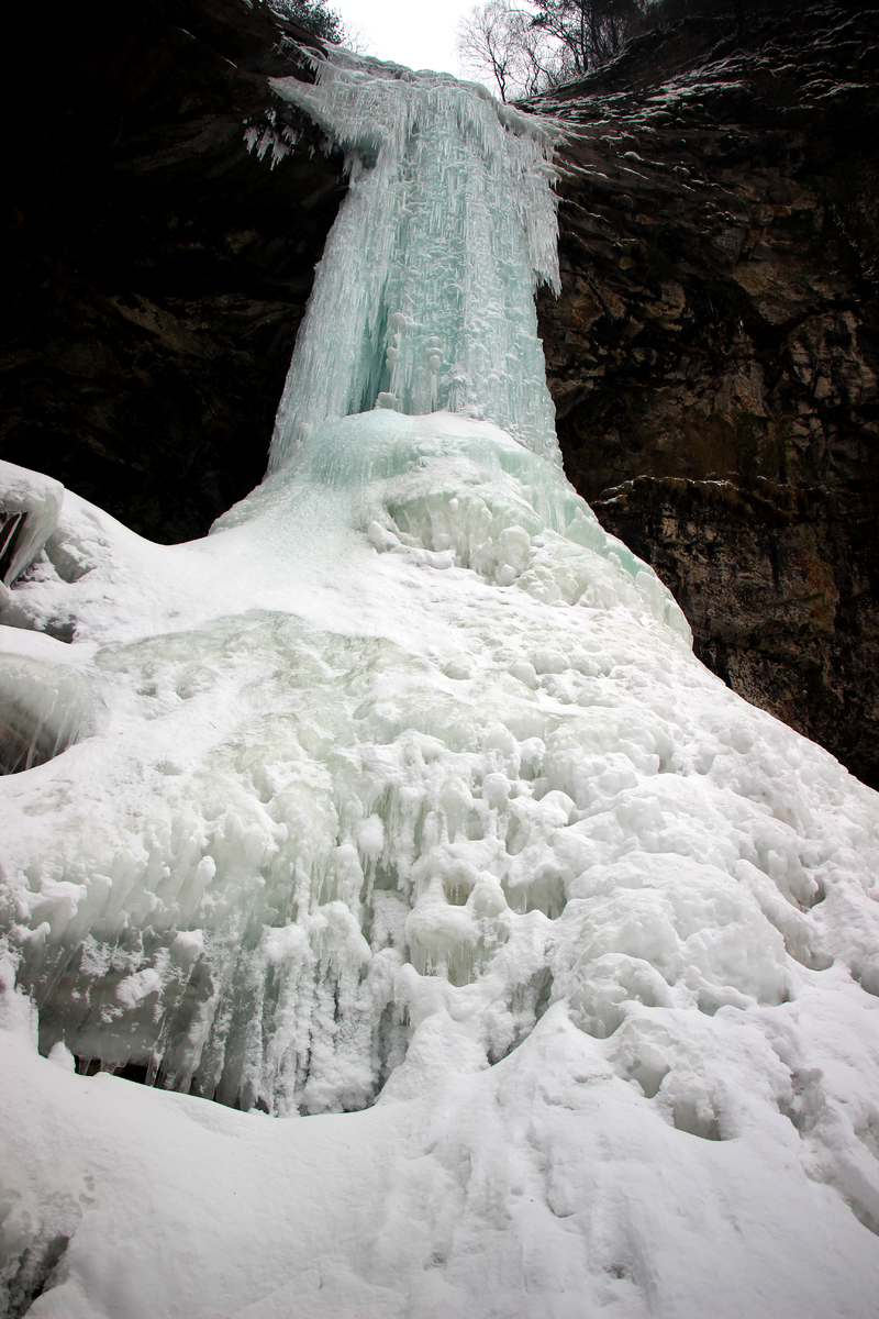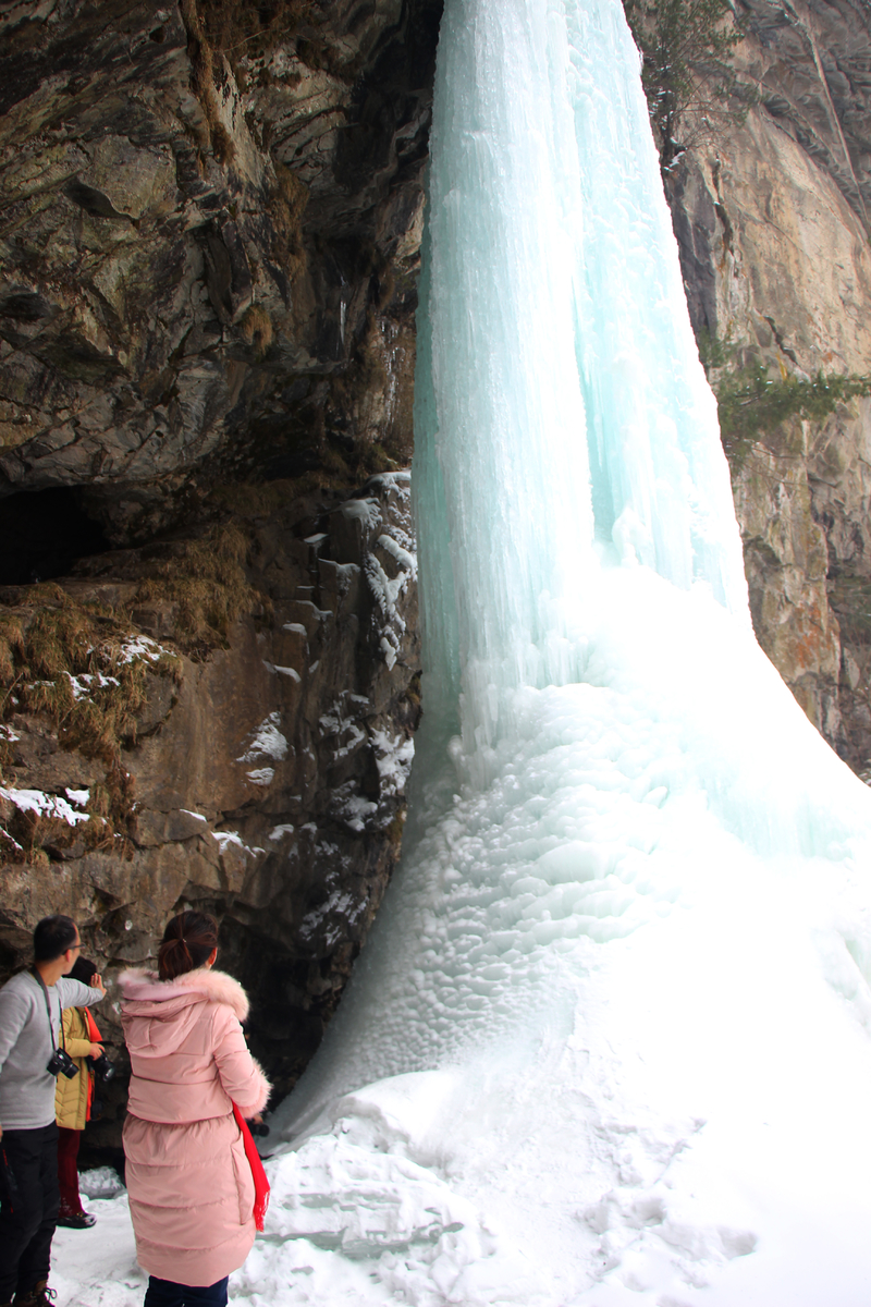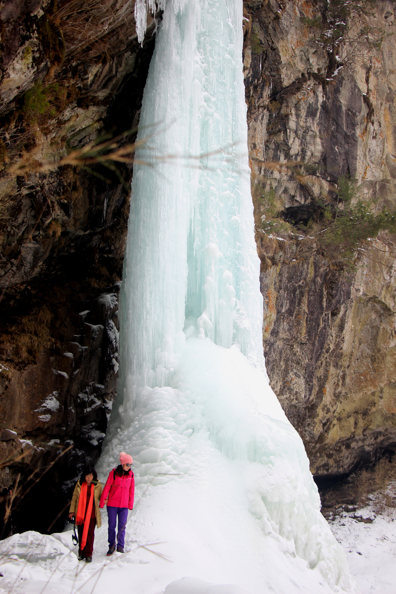 瀑布,百米悬冰,上下连成浑然一体,晶莹剔透,美轮美奂,冰清玉洁,宛如天宫琼楼玉宇仙境。