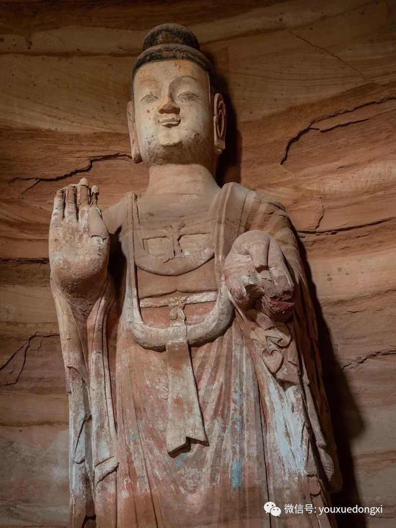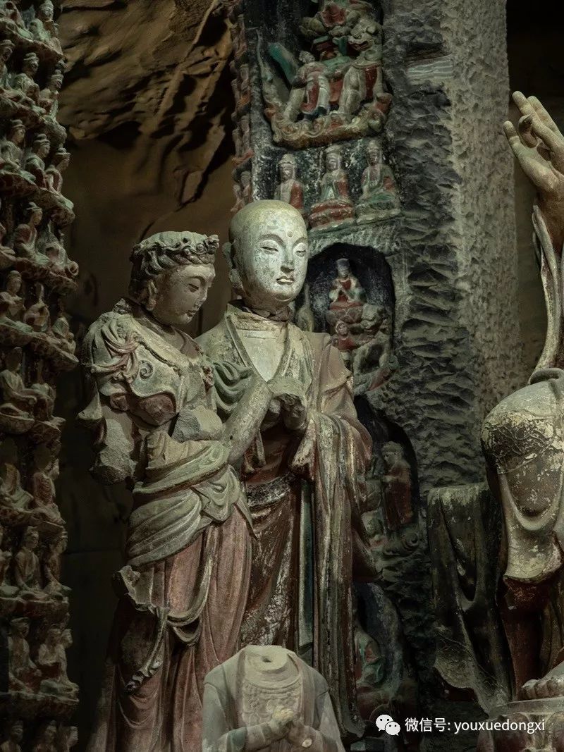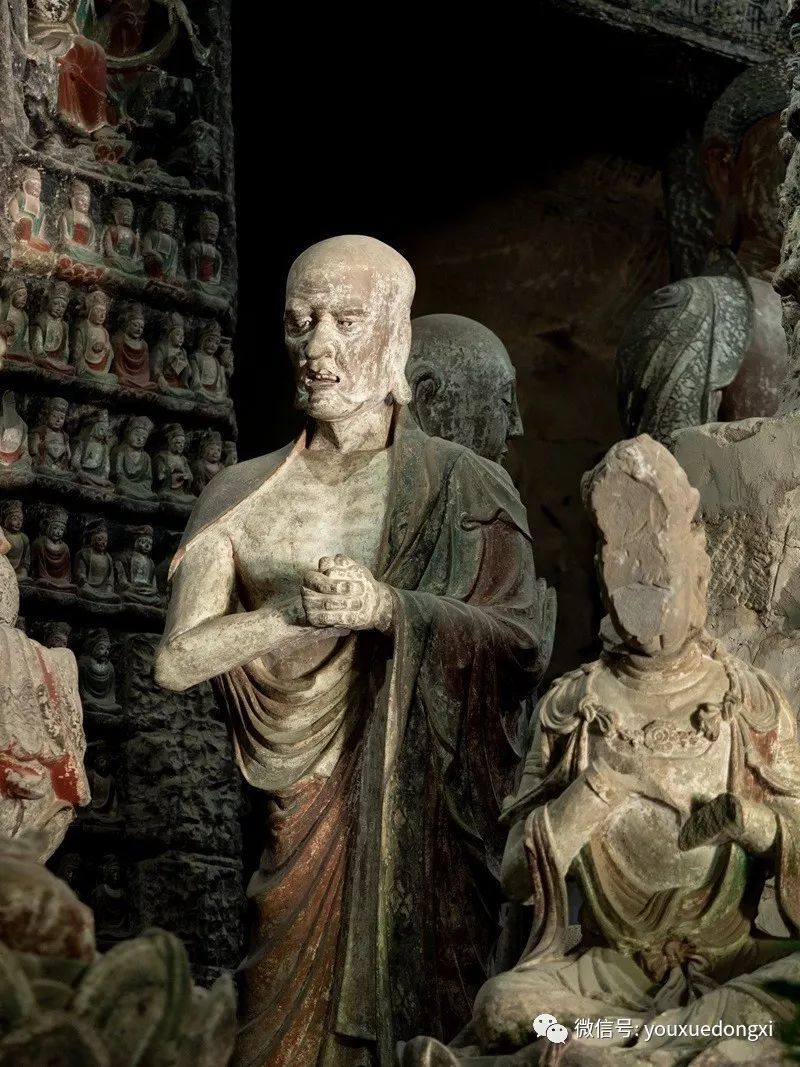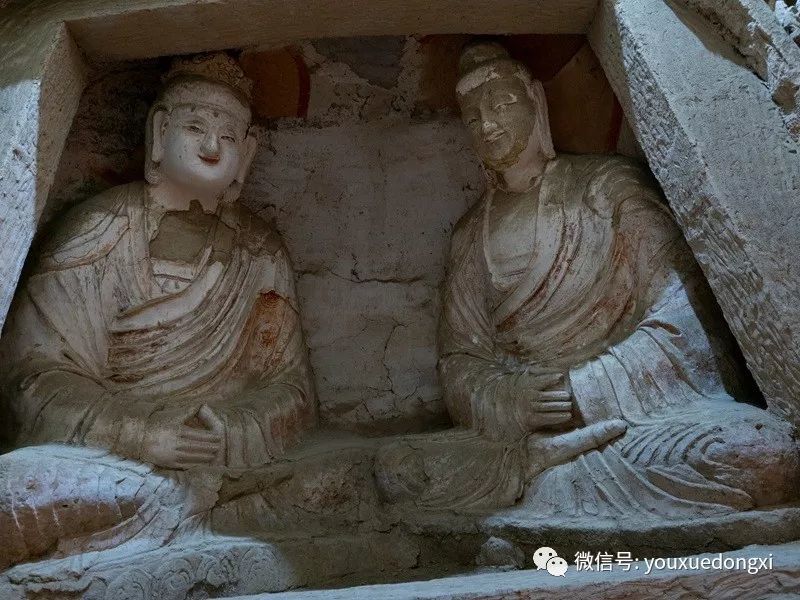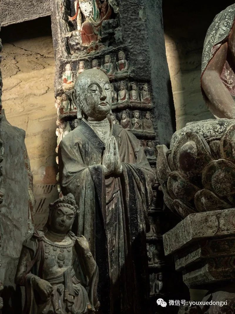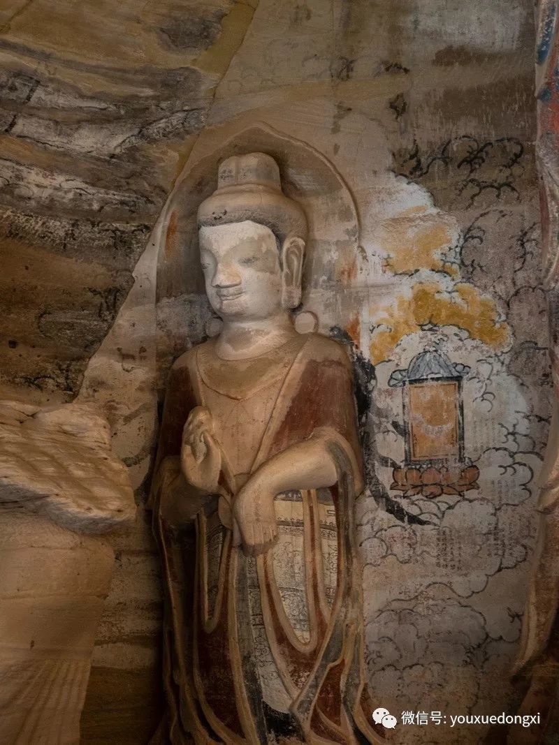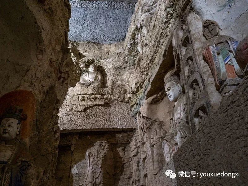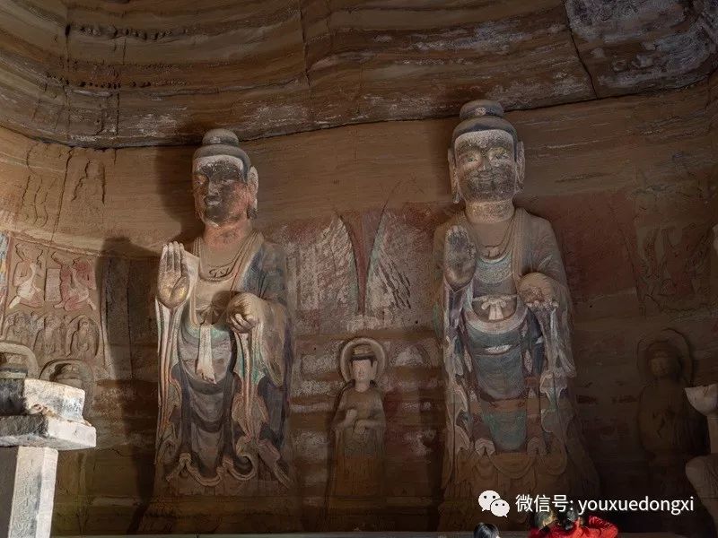王母宫石窟没有敷泥的雕像,颇有北魏风范。
