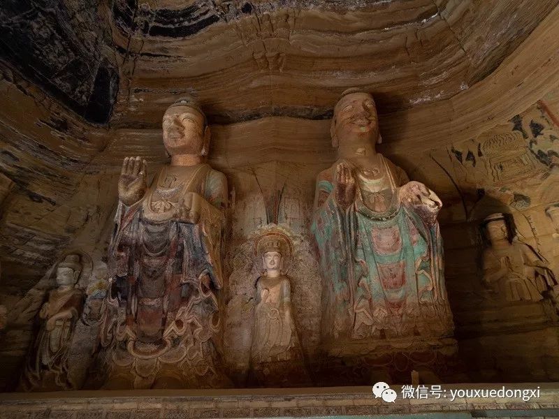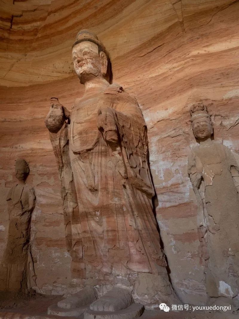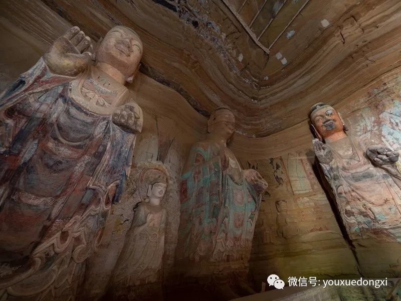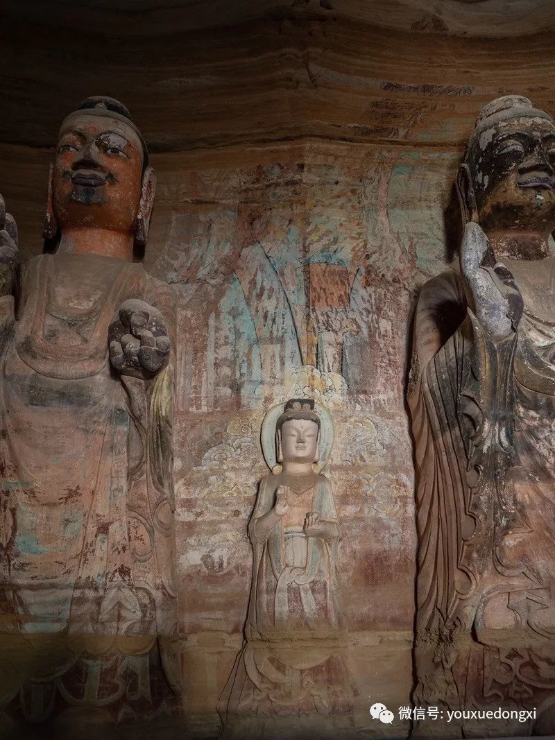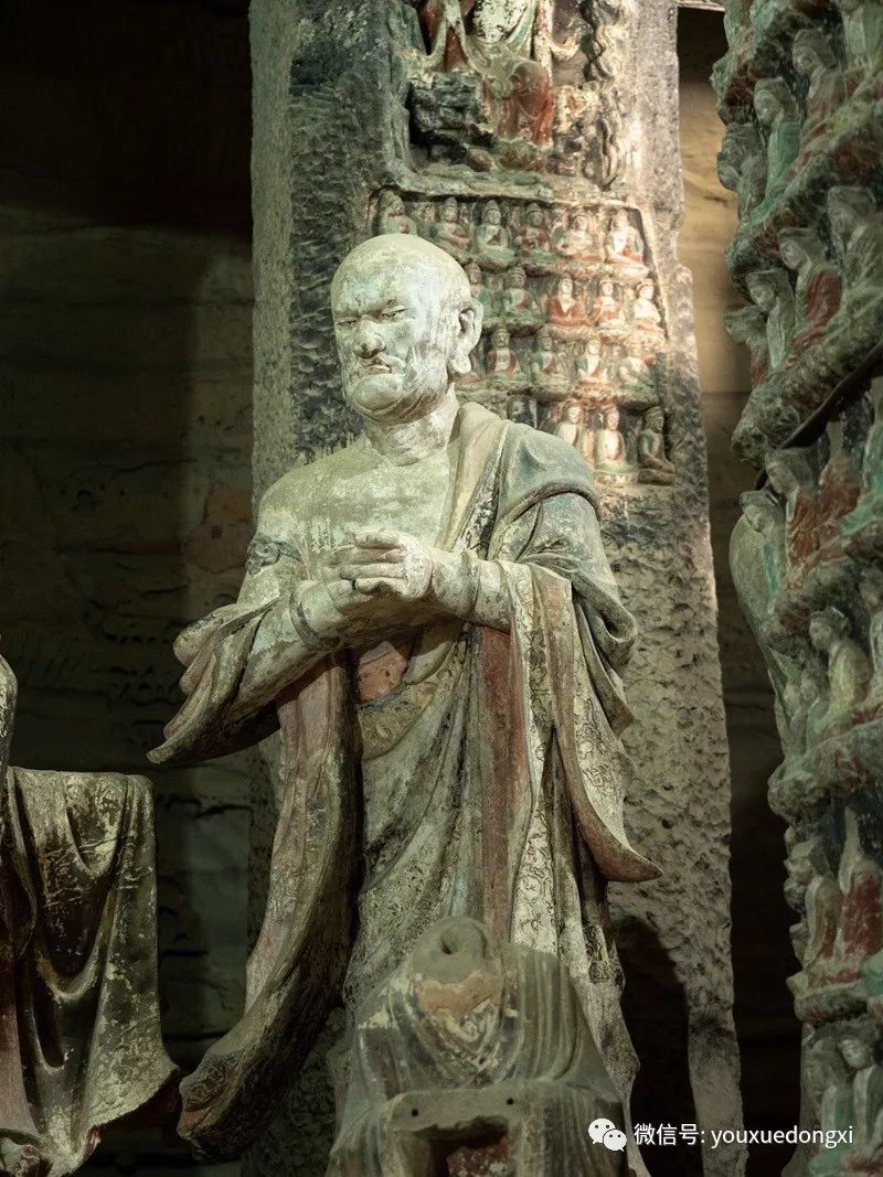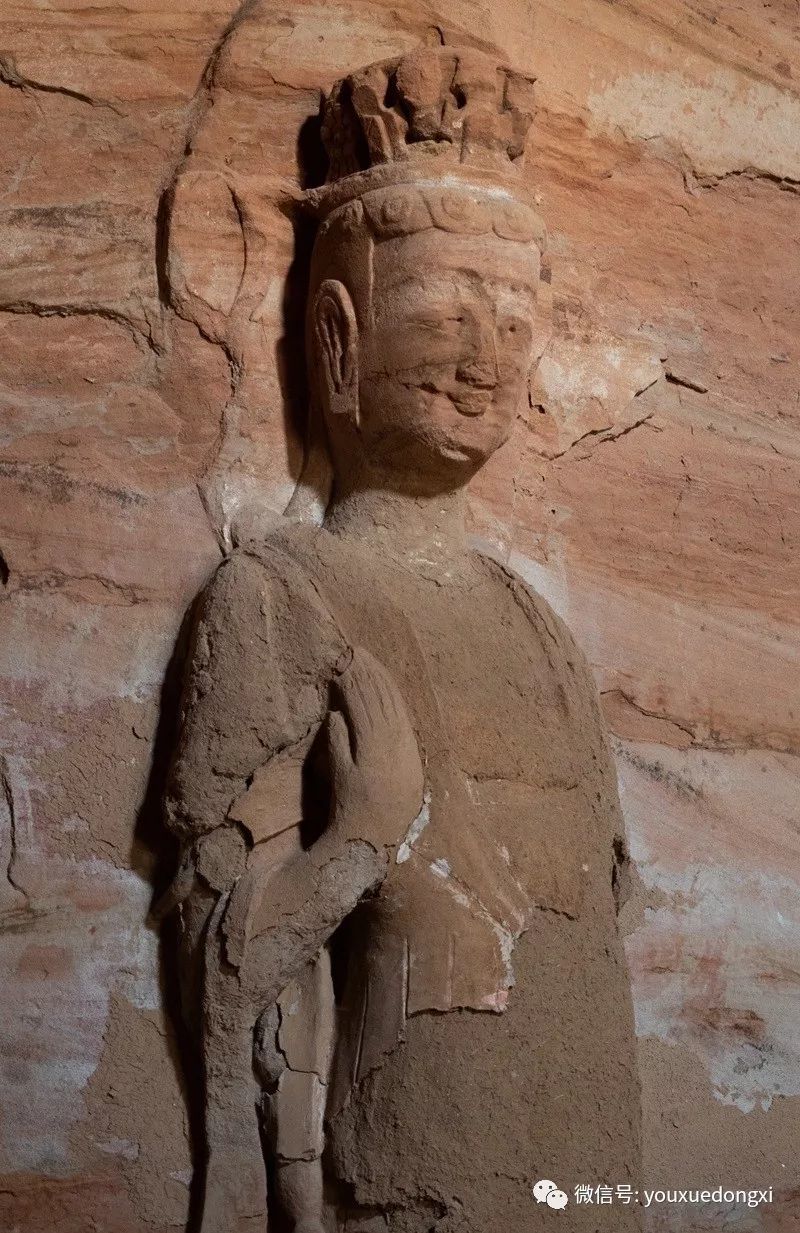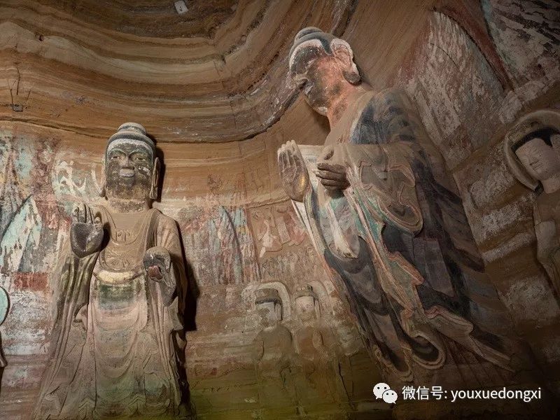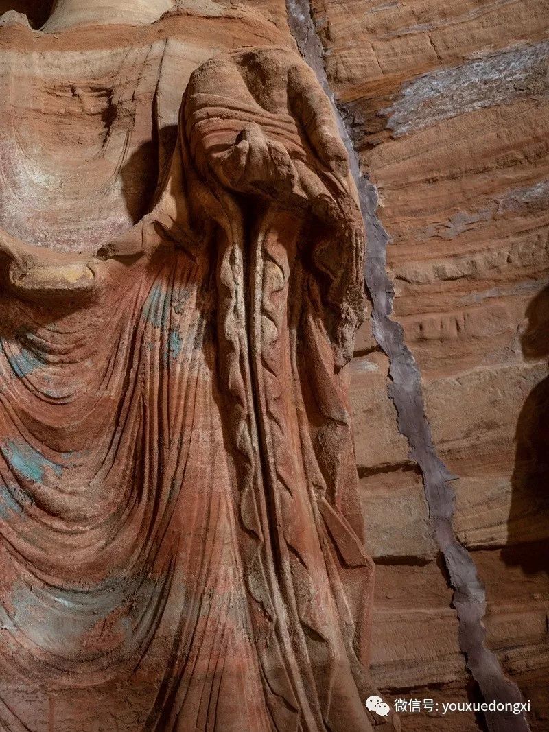王母宫石窟没有敷泥的雕像,颇有北魏风范。