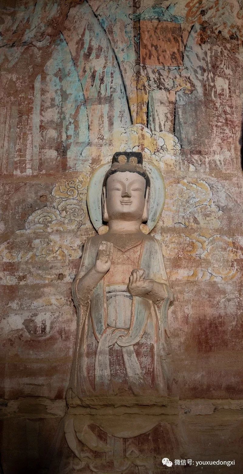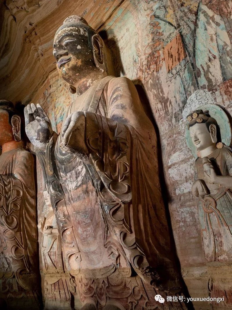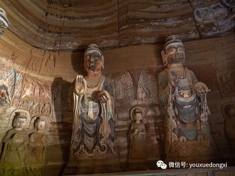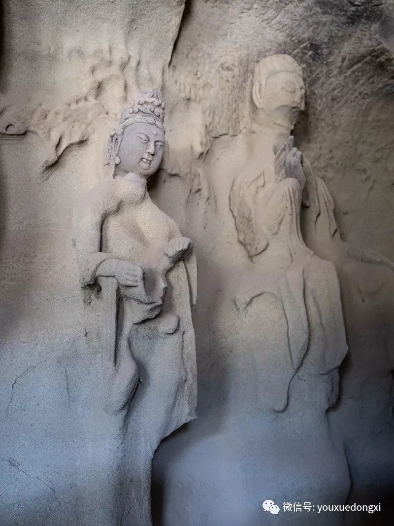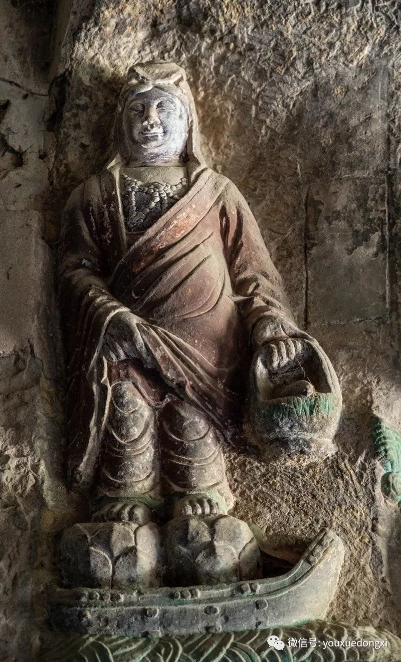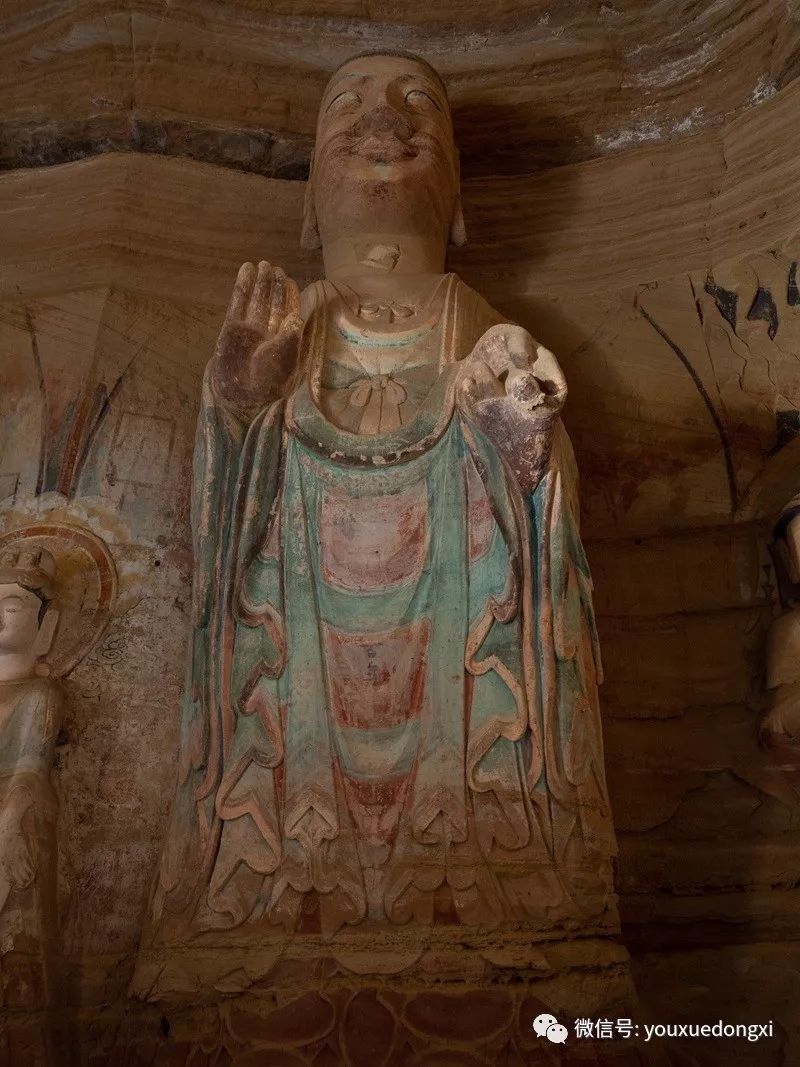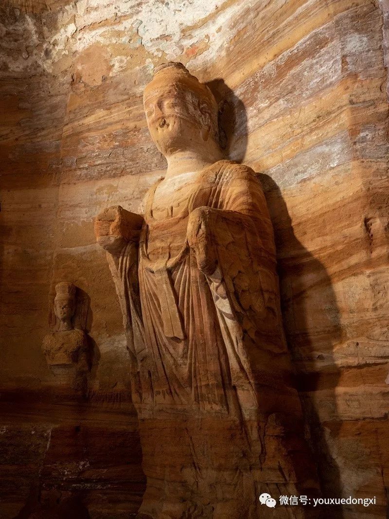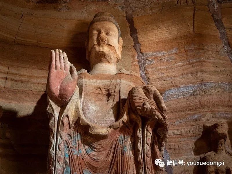 王母宫石窟没有敷泥的雕像,颇有北魏风范。