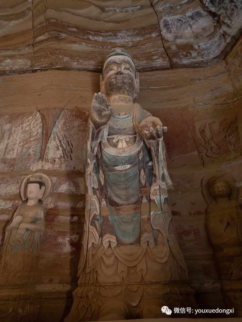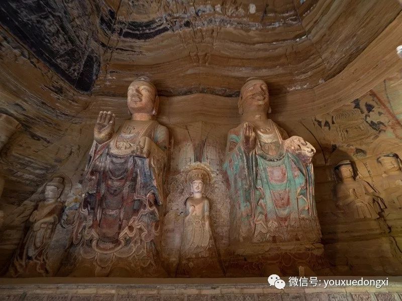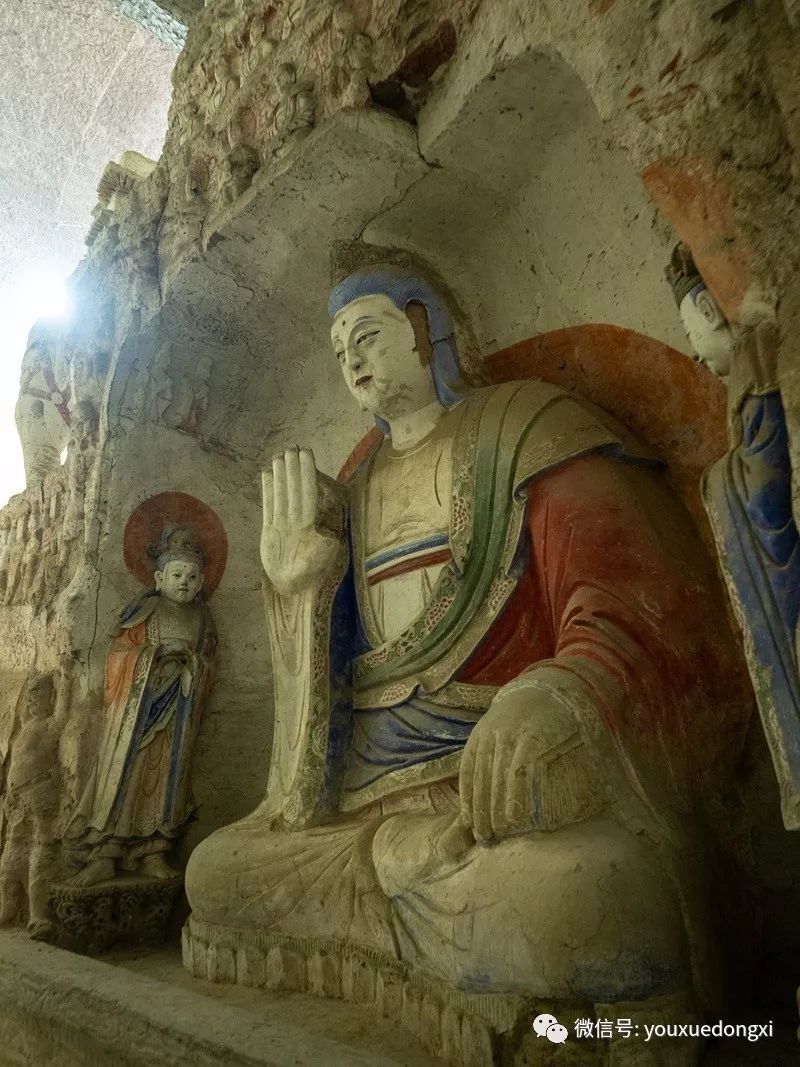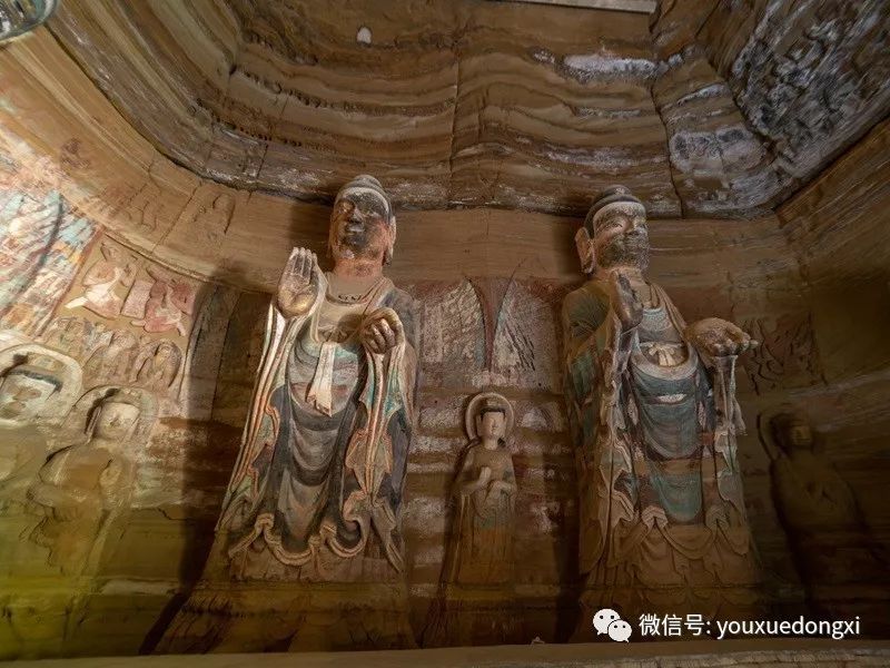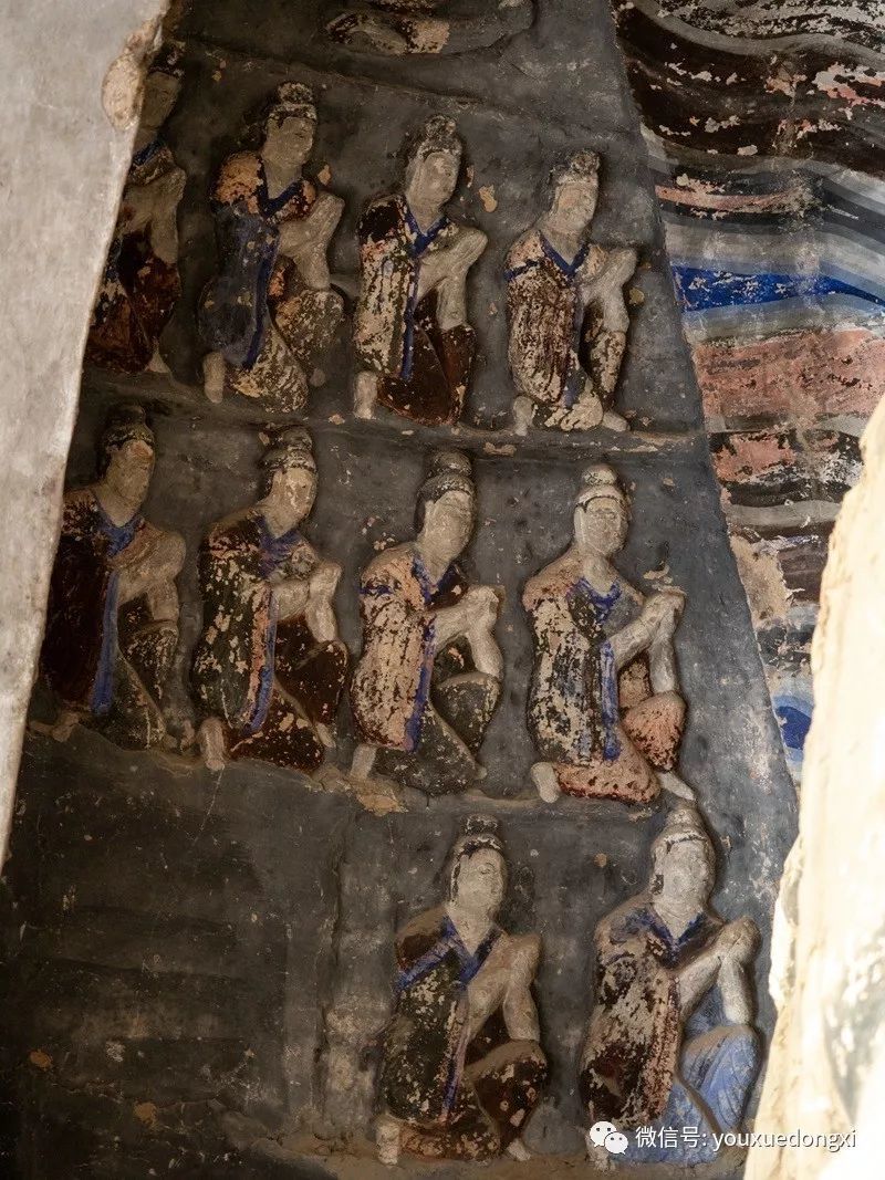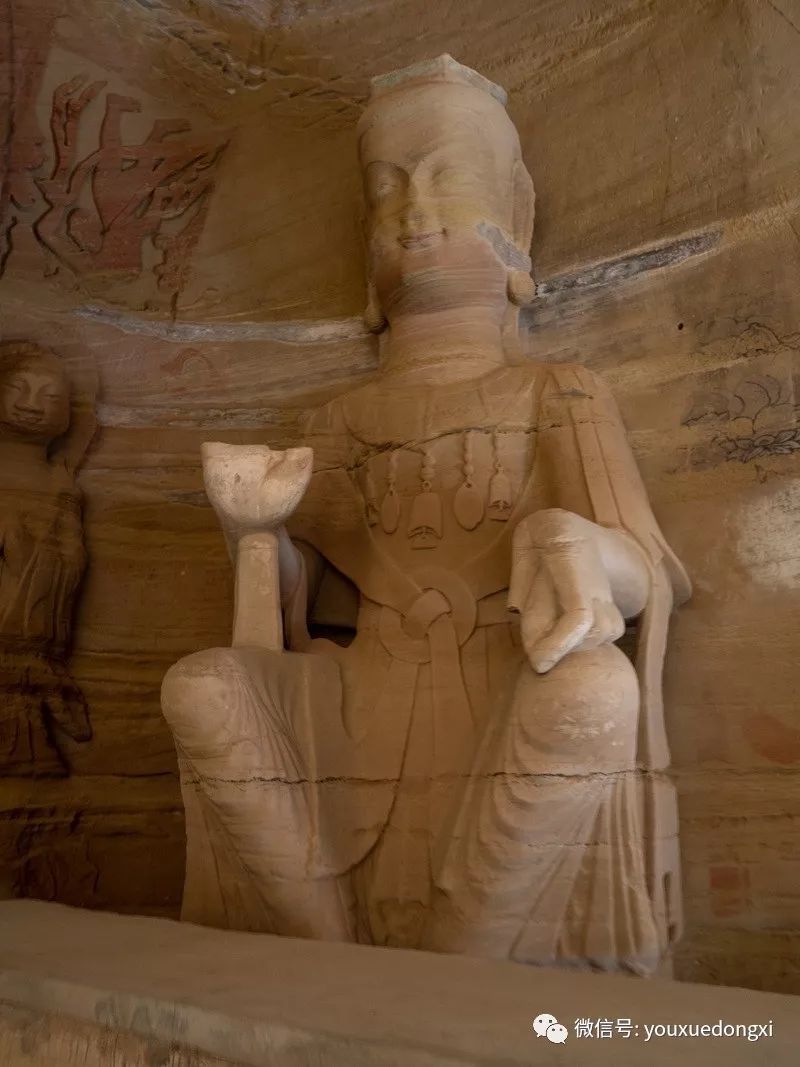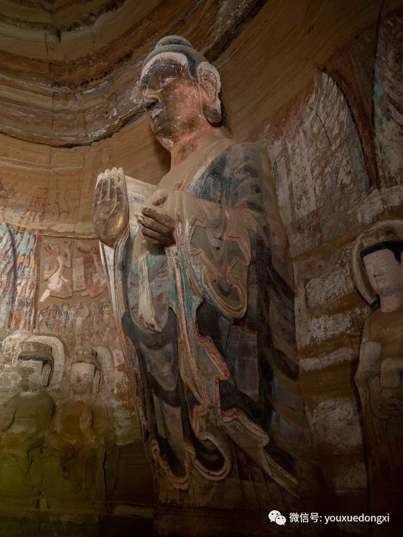 王母宫石窟没有敷泥的雕像,颇有北魏风范。