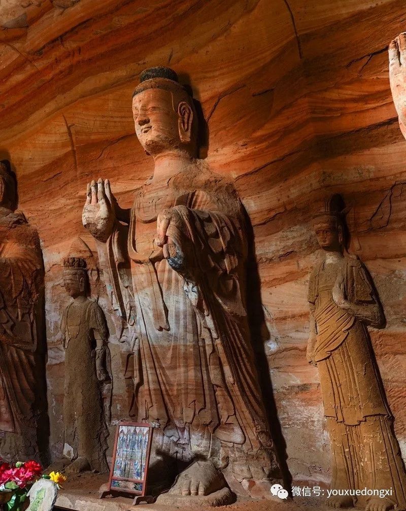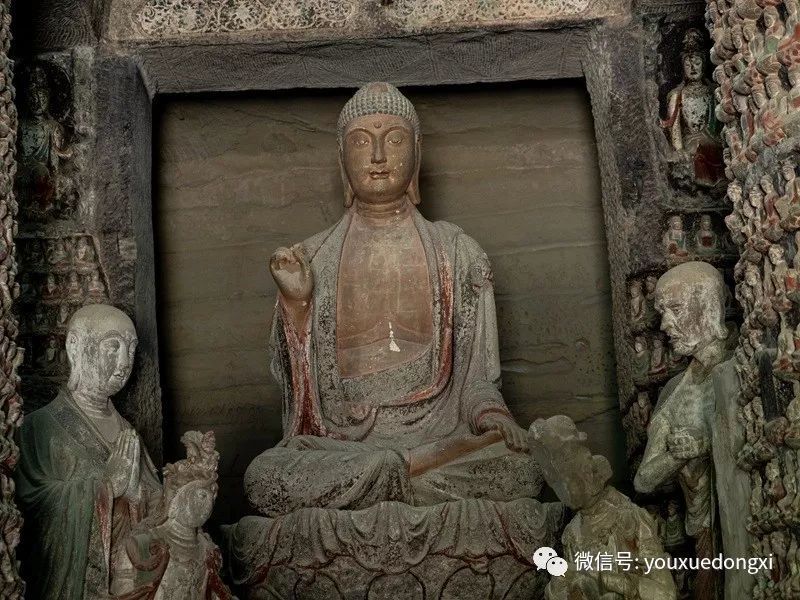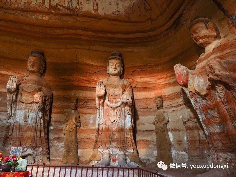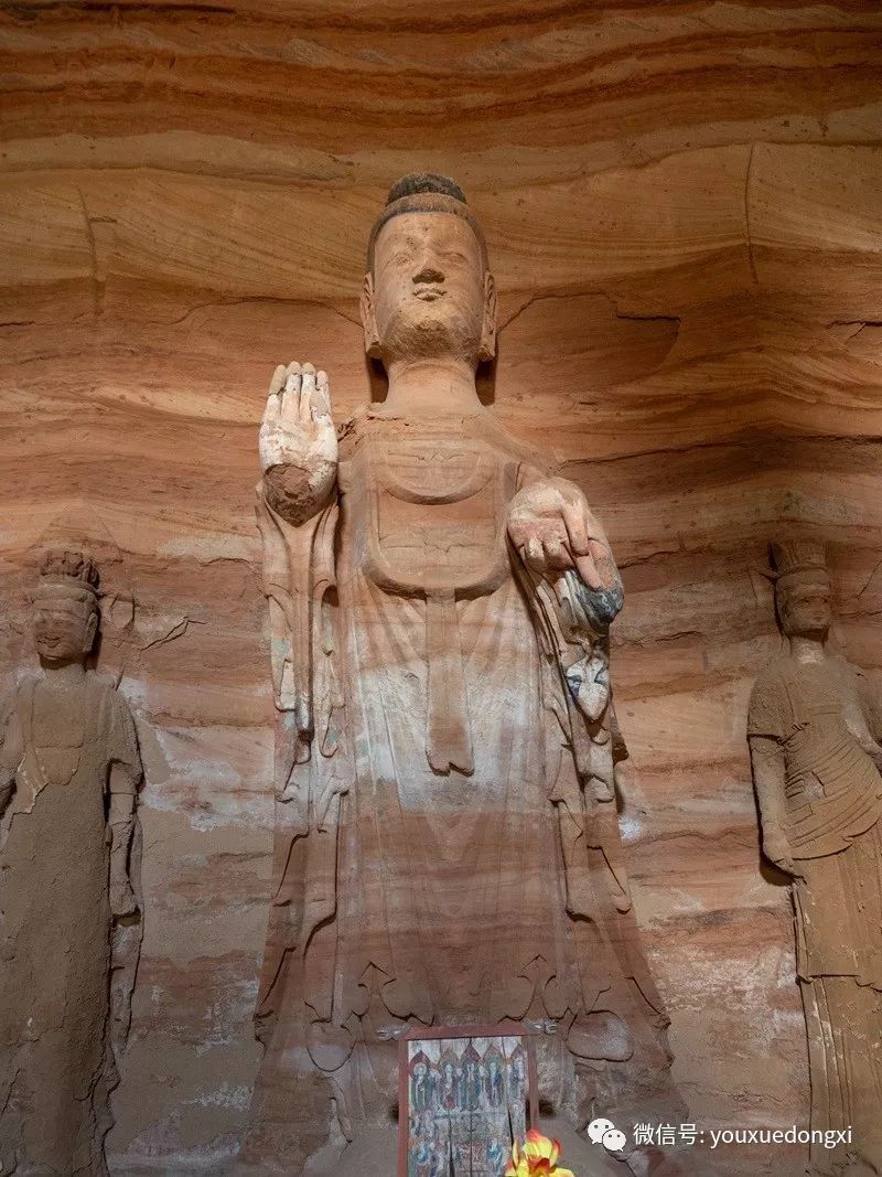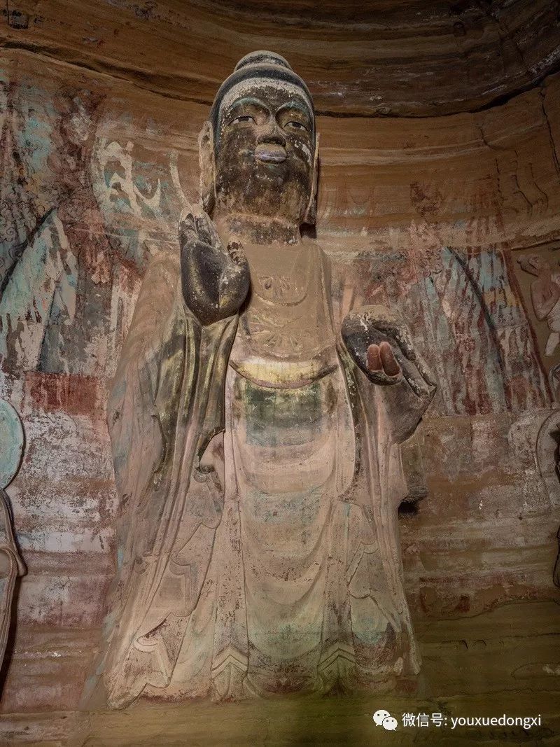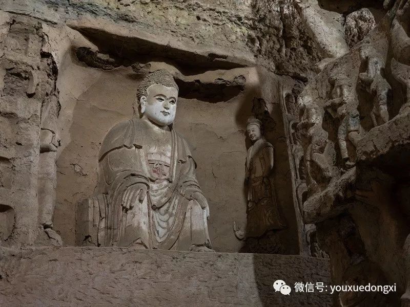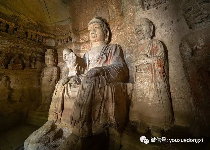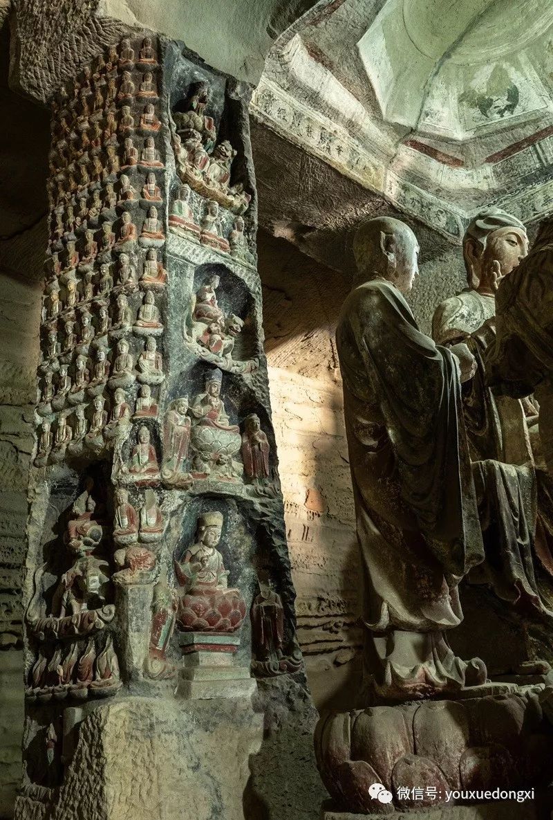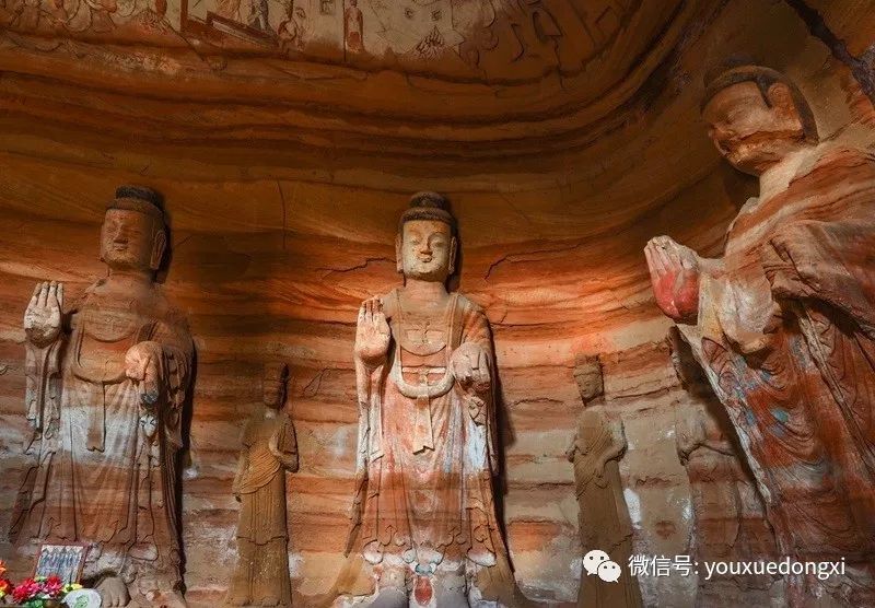 王母宫石窟没有敷泥的雕像,颇有北魏风范。