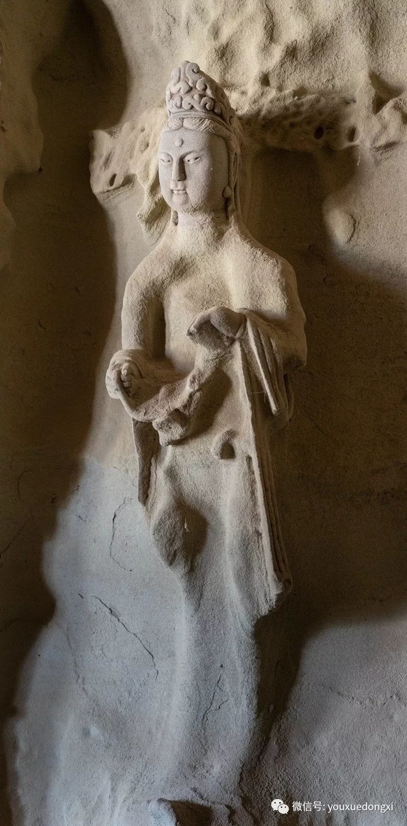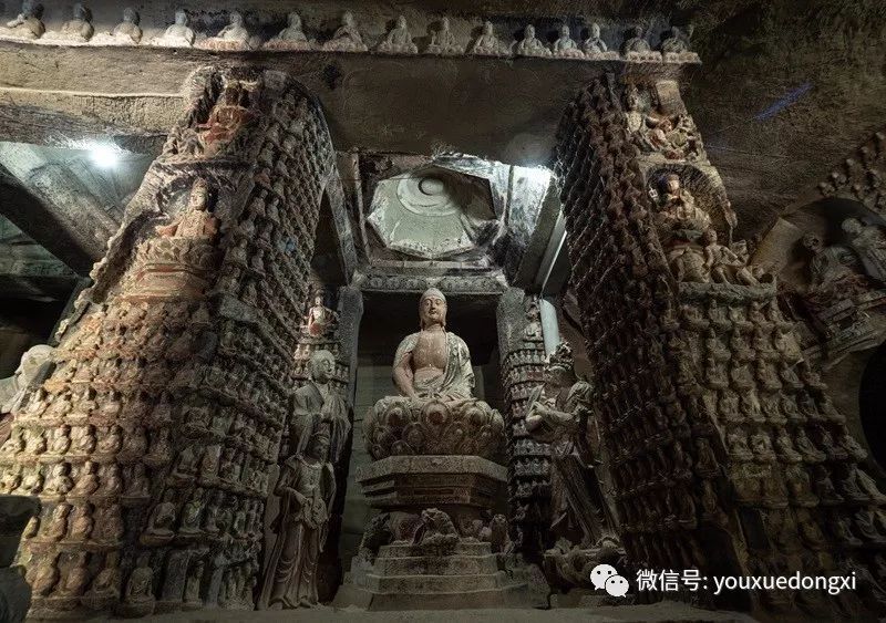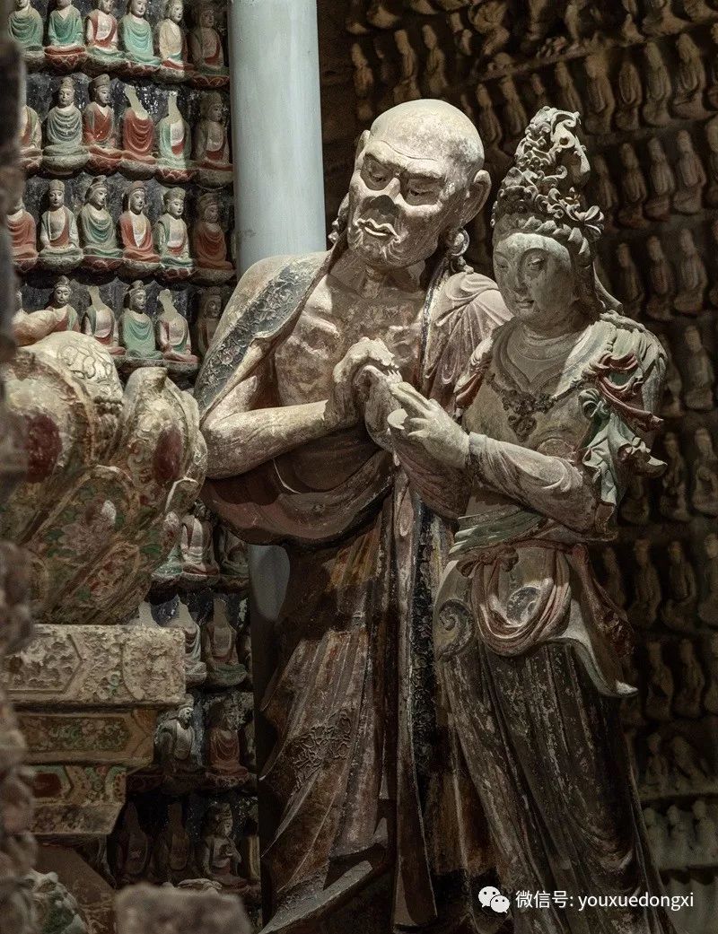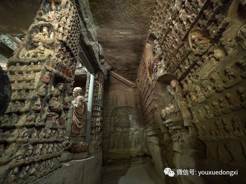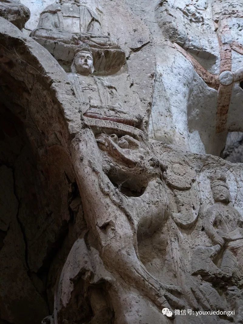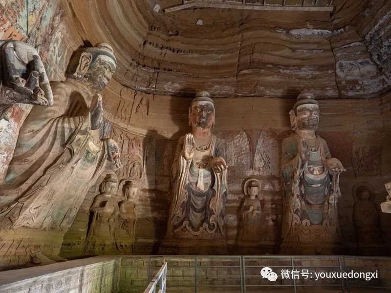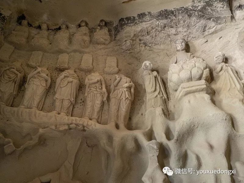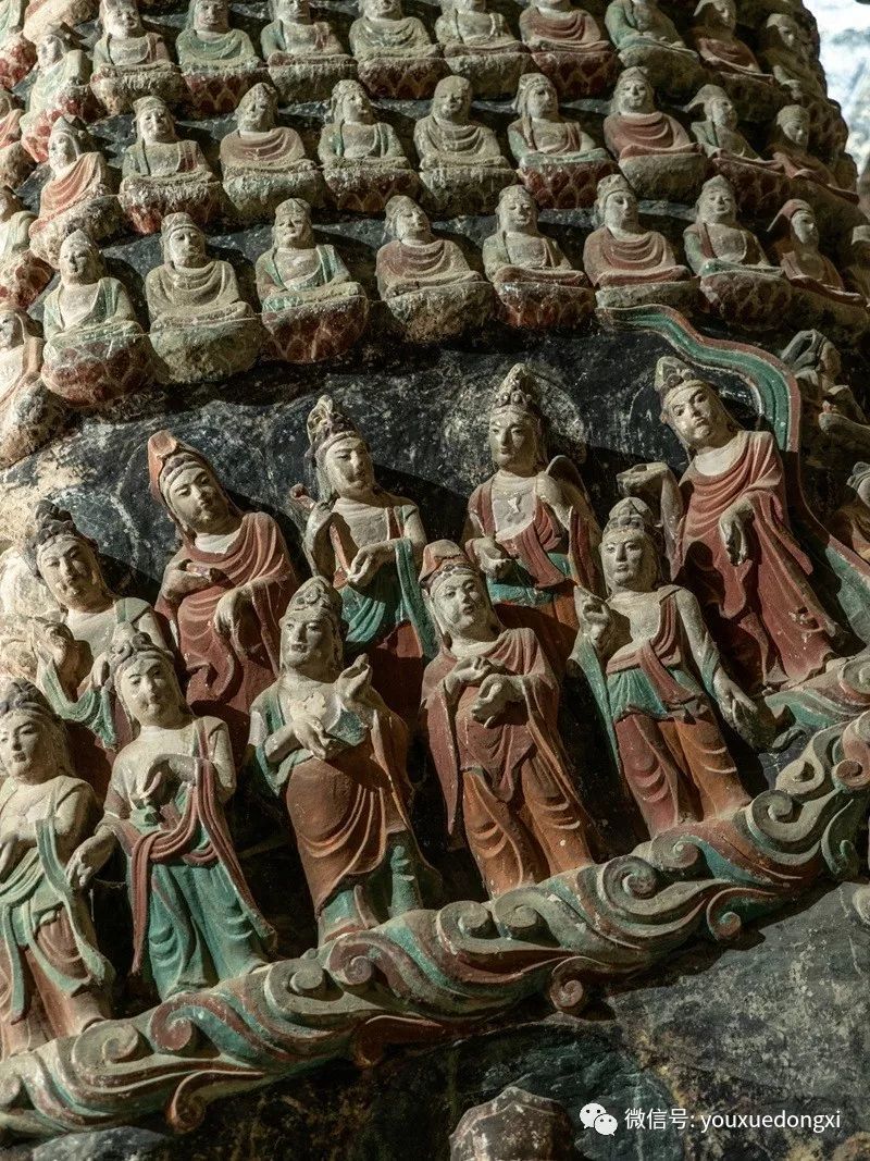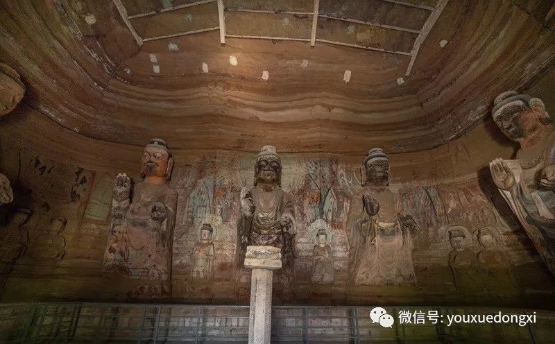 王母宫石窟没有敷泥的雕像,颇有北魏风范。
