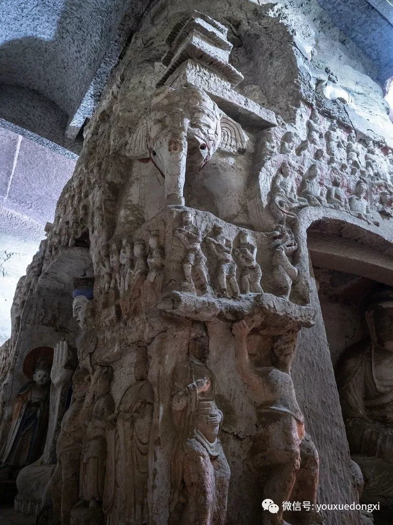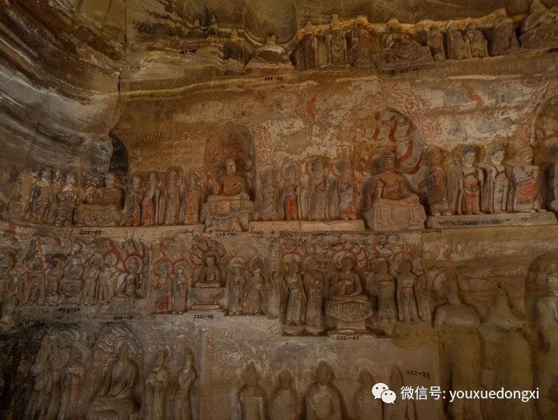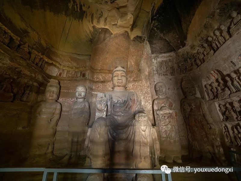 路程省略一万字,反正到了北石窟寺门前时,都有点不敢相信是真的。165窟是北石窟寺的开山之作,也是登峰造极之作,虽说绵延亘长的覆钟山黄砂岩崖壁上,此后亦留下西魏、北周、隋唐乃至宋代密如蜂窝的续凿,但无论窟龛规模还是艺术水准,与这座庞大精美的北魏七佛窟比起来,皆难以望其项背。