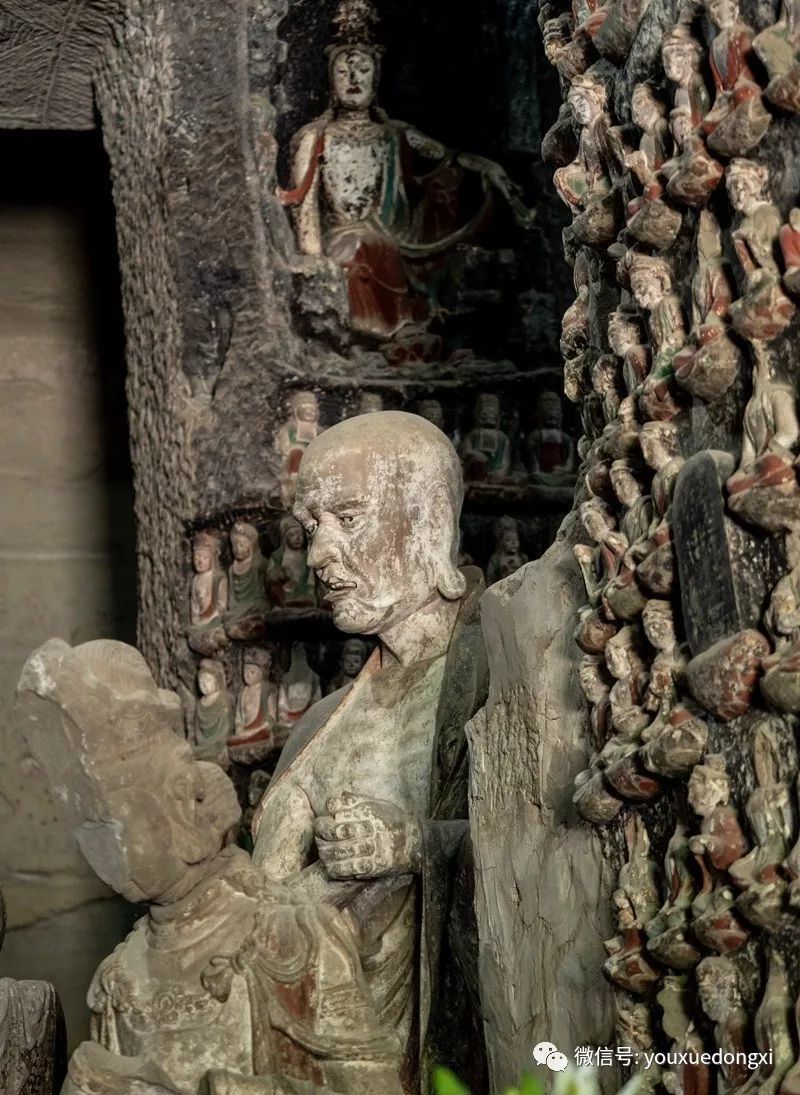 我看到台湾一位研究者这样说,“唐玄奘之后,中国佛教有了禅堂、选佛堂。修行者集中在禅堂里进行修行,禅堂里充满了修行者们各种各样的修行境界与状态。钟山石窟里千姿百态的佛教造像与禅堂里那些千姿百态的修行者不谋而合,这是其最伟大的一项成就,即具有修行的写实性,把入定以后的状况描述了出来,把真理境界的体验表达了出来。”或许,这才是对钟山石窟艺术性的最高赞誉。