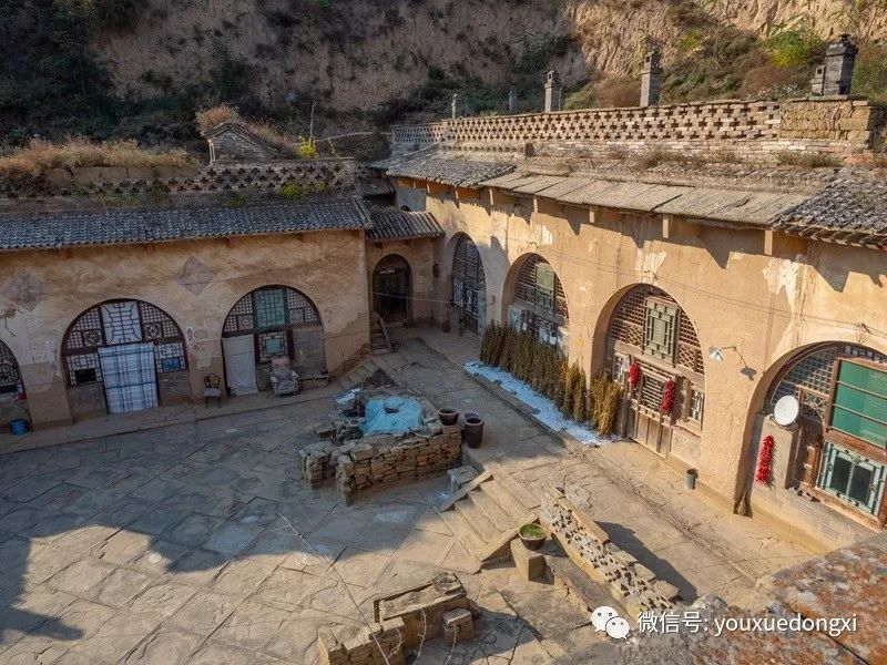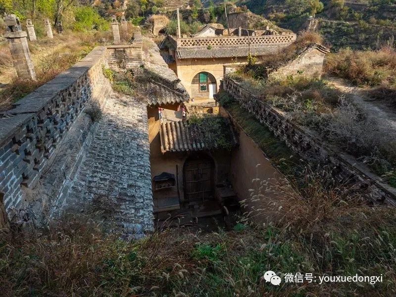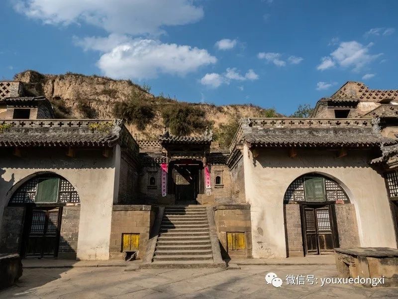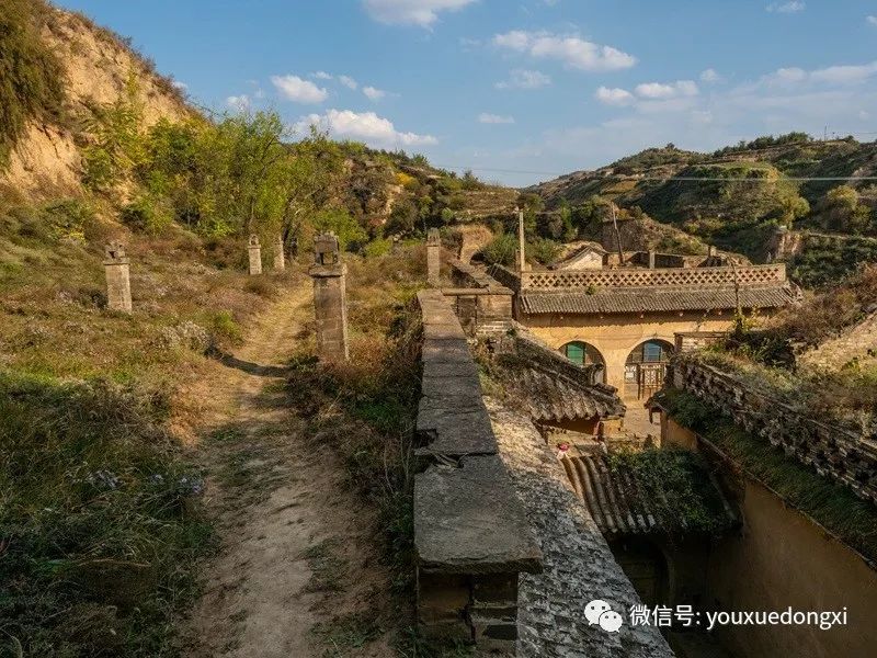 从上院暗道或院落对面的甬道,都可以登上庄园最高处,看清全貌。庄园后及两侧依着黄土高坡,庄园前是沟壑和高坡,植被丰富。真正做到了外不可侵入,内则插翅难飞。整个庄园与自然相协调,又符合传统风水理念,这在一百四十余年前闭塞的深山沟里,已实属难得。