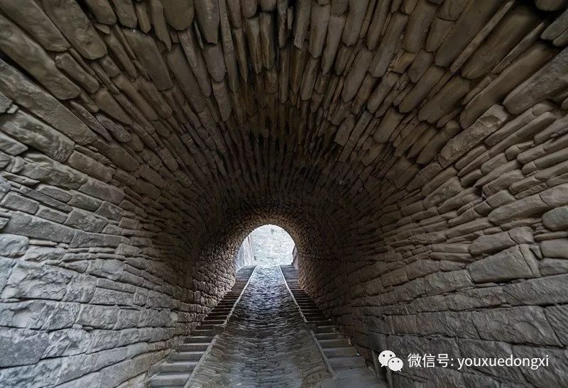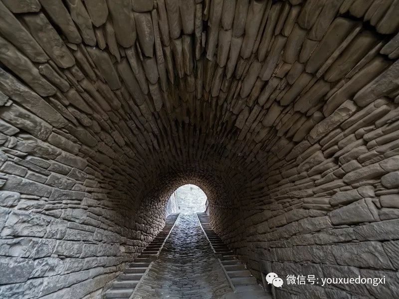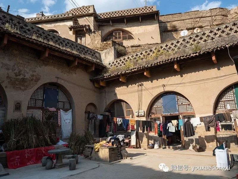 闲话打住,15公里的路程,听起来不远,走起来却是要了卿命,又是路窄弯多,上坡下坡,不知尽头。难怪姜氏庄园的主人,陕北大财主姜耀祖要历时16年亲自监修才完成这幢私宅,根本就是材料也难以运输好吗?不过到了近前,便会发现,姜氏庄园风水也是好的,背山面水,依山取势,深藏不露。庄园需翘首仰望,恍入云端。整块整块巨石将黄土山脉包裹得严严实实。山虽松疏,石是硬的。一座石砌围城,城壁只留宅门,津要又颇具威严,寨门为拱形石洞,寨墙正立面镌刻主人亲笔题写的“大岳屏藩”四个大字。据说当年院内制高点还有数门火炮护卫四方,可谓威风凛凛,且凭此可看出,全国唯一的城堡式窑洞庄园实非浪得虚名。