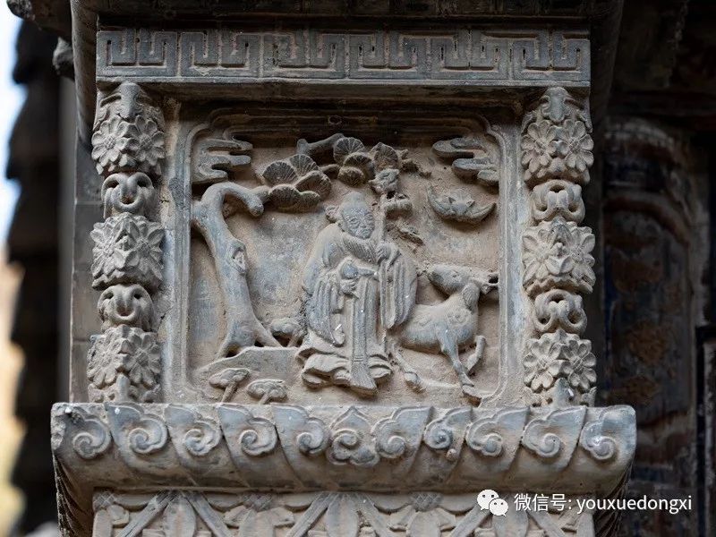 是的,虽然二者都建在泾城以西,泾水之南,泾、汭二河交汇处的回山脚下,参观时同进一个大门,但若介绍,还只能是花开两支,各表一朵。泾川自周、秦以来就是中原地区通达西北的要道, 也是丝绸之路东段靠近古都长安的重要站口, 历代皆为边陲重镇。传说公元前十世纪, 周穆王西游与西王母在此地相会。当时的泾川一带, 属于周王朝辖地边缘, 居住着被称为“ 犬戎” 的少数民族, 所以, 西王母很可能是当时西北地区母系氏族部落的一个酋长。她的形象在《山海经》中是“...其状如人,豹尾虎齿,善啸,蓬发戴胜 ”,俨然是半人半兽类了。不过关于这一点,有学者也指出,所谓豹尾虎齿,很有可能是部落的图腾崇拜反映在了酋长的服装面具装饰上,并非真人长成那样。在《穆天子传》中,西王母就比较正常,是一位温文儒雅的统治者。两汉时期, 儒学与道教、巫术的原始神话传说相结合, 把西王母尊为能使人长生不死的神仙, 在天界中地位越来越高,而且是一副雍容华贵、风华绝代的形象。汉代山东、四川等地壁画与画像石、砖中, 也都有被神化了的西王母形象。
