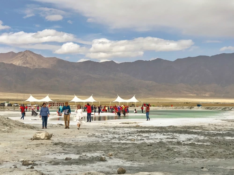 大多数颜色浓烈到仿佛饱和度溢出的都是小小小盐湖,站在边上看都能看到颜色和分层。想要拍天空之境的女生大可不必担心游人会多,各种造型随便凹。
